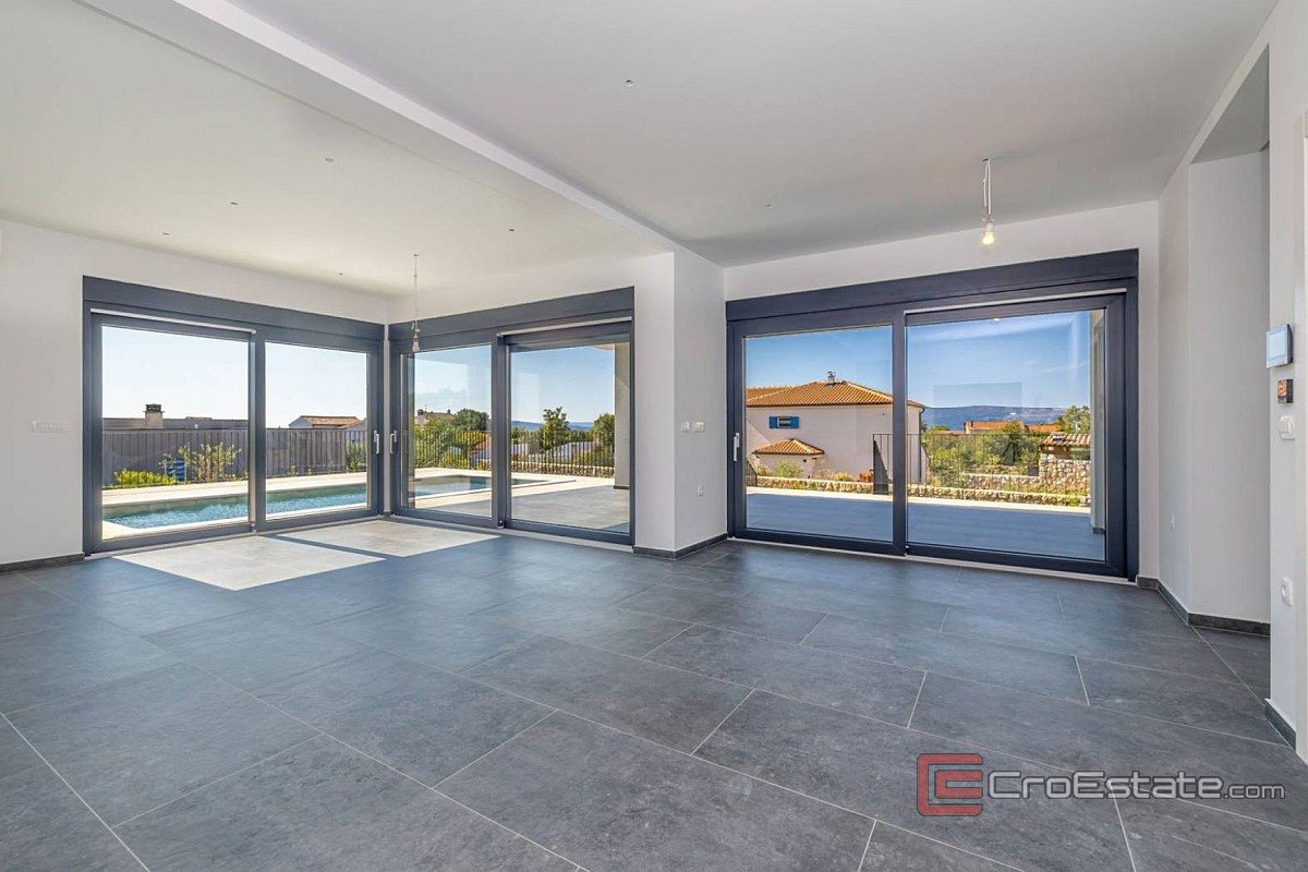 The villa is located in a small and quiet village in the interior of the island of Krk. Only a few minutes drive from the town of Krk. The villa itself is built in a modern style, with an emphasis on functionality and comfort. On the ground floor there is a spacious living room connected to the kitchen and dining room, while on the first floor there are bedrooms that provide peace and privacy. The interior is equipped with modern furniture and technology, which ensures a comfortable stay throughout the year. Special emphasis is placed on the outdoor space, the landscaped courtyard with a swimming pool and a sunbathing area makes it an ideal place for relaxation and socializing. The property is located in a quiet environment, with the convenience of quick access to nearby beaches and everyday amenities.