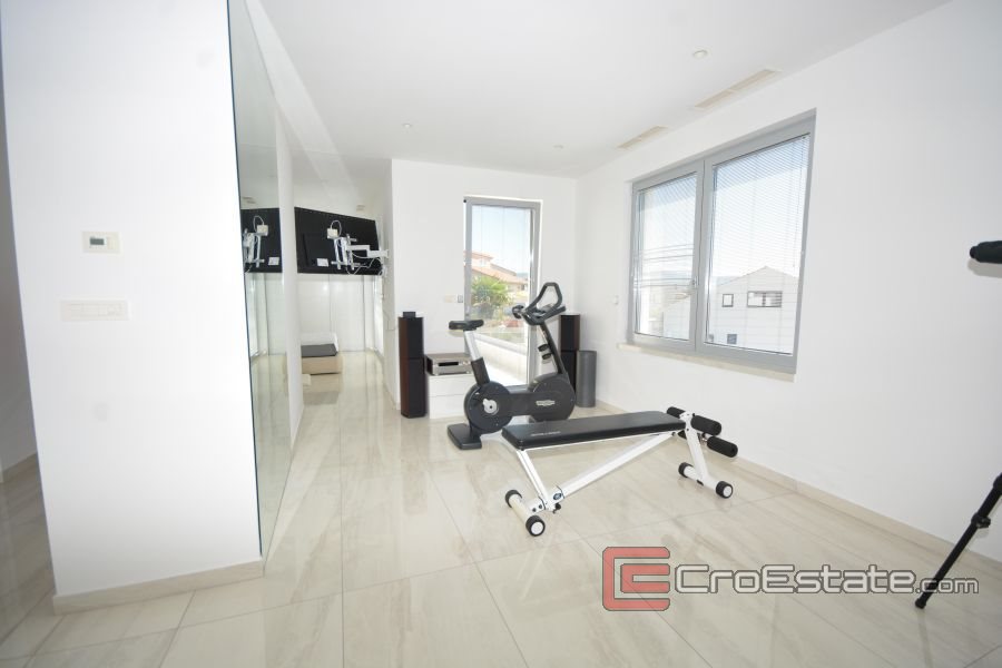Upstairs are three spacious bedrooms with private bathrooms and terraces. The master bedroom also has an exercise area.