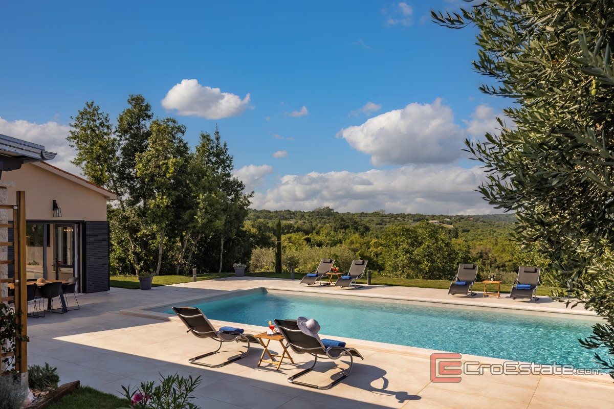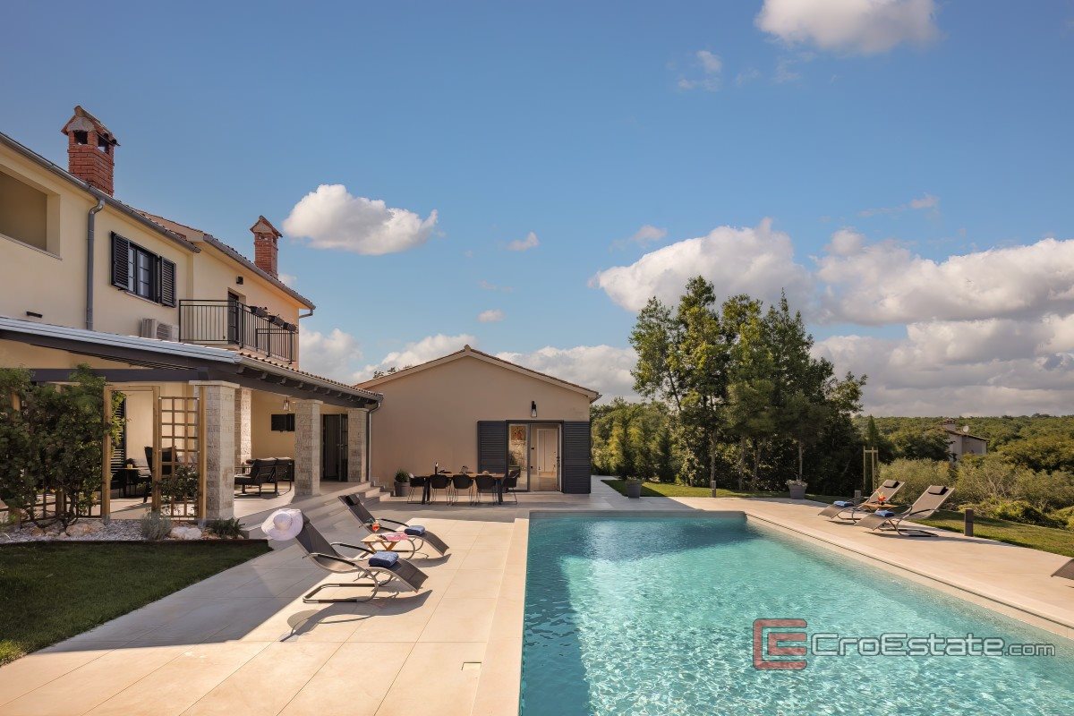 In a unique location, surrounded by untouched greenery and the peace of the Istrian interior, a luxurious villa with a pool is for sale.