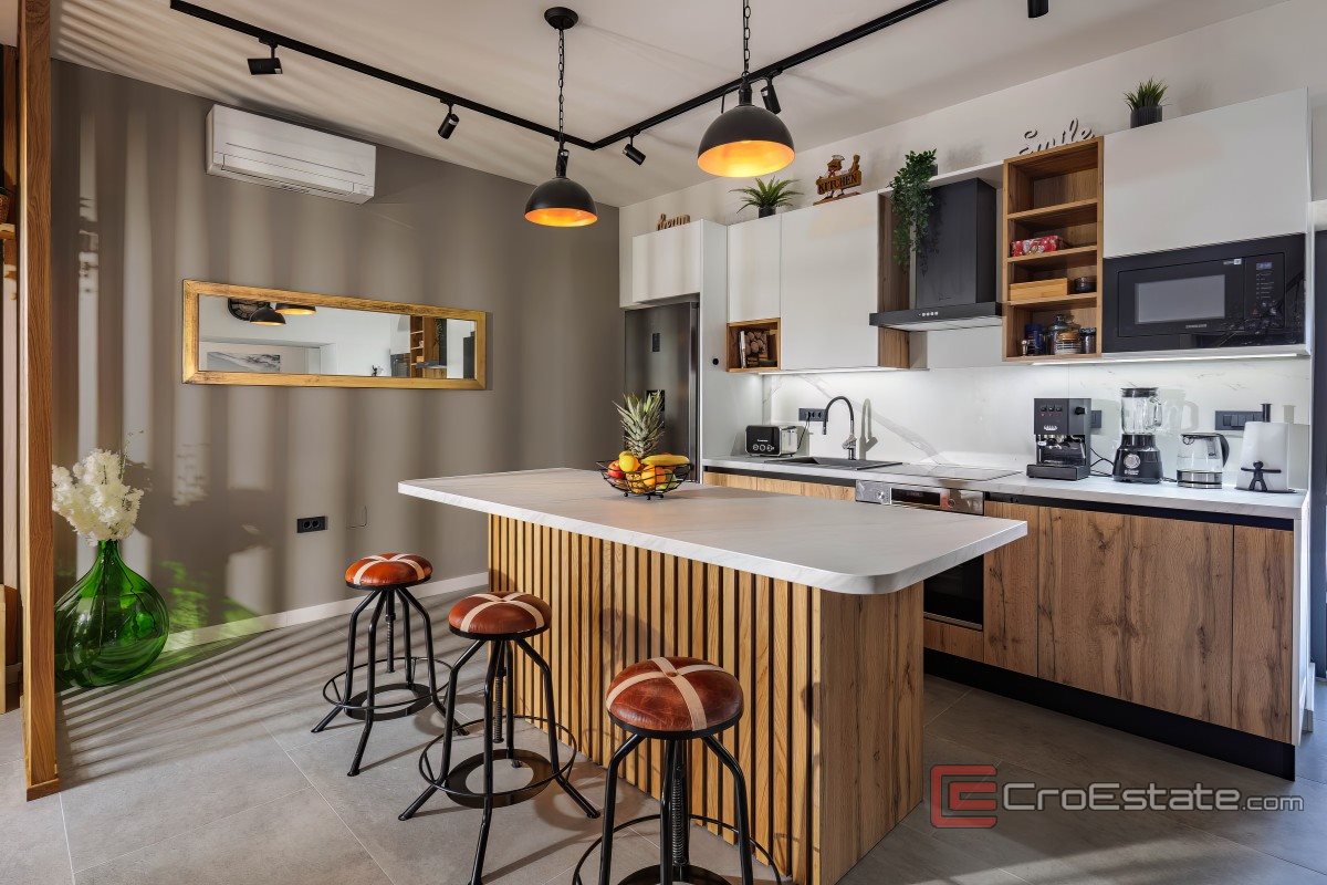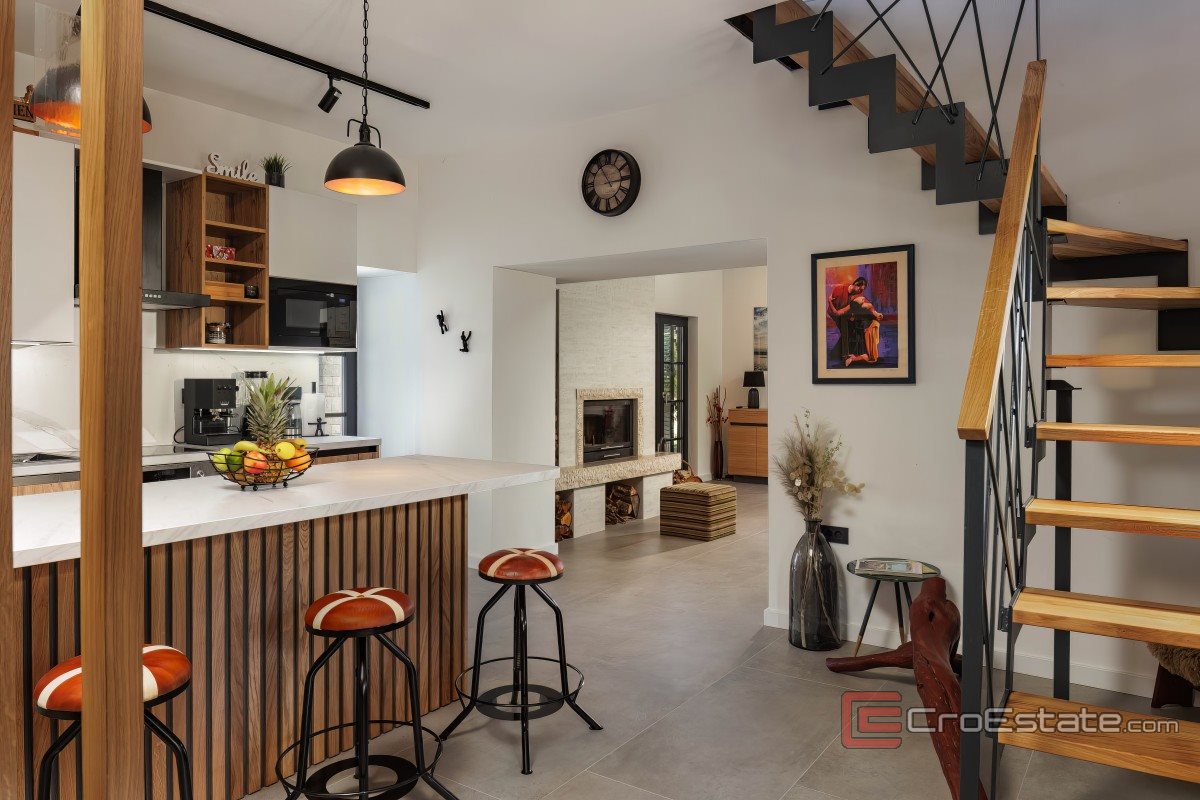 With a captivating panoramic view of the Učka Nature Park, this villa offers the perfect blend of elegance, comfort and authentic Istrian charm. In just fifteen minutes by car you can reach the first beaches, which makes this property an ideal combination of peace and proximity to the sea.