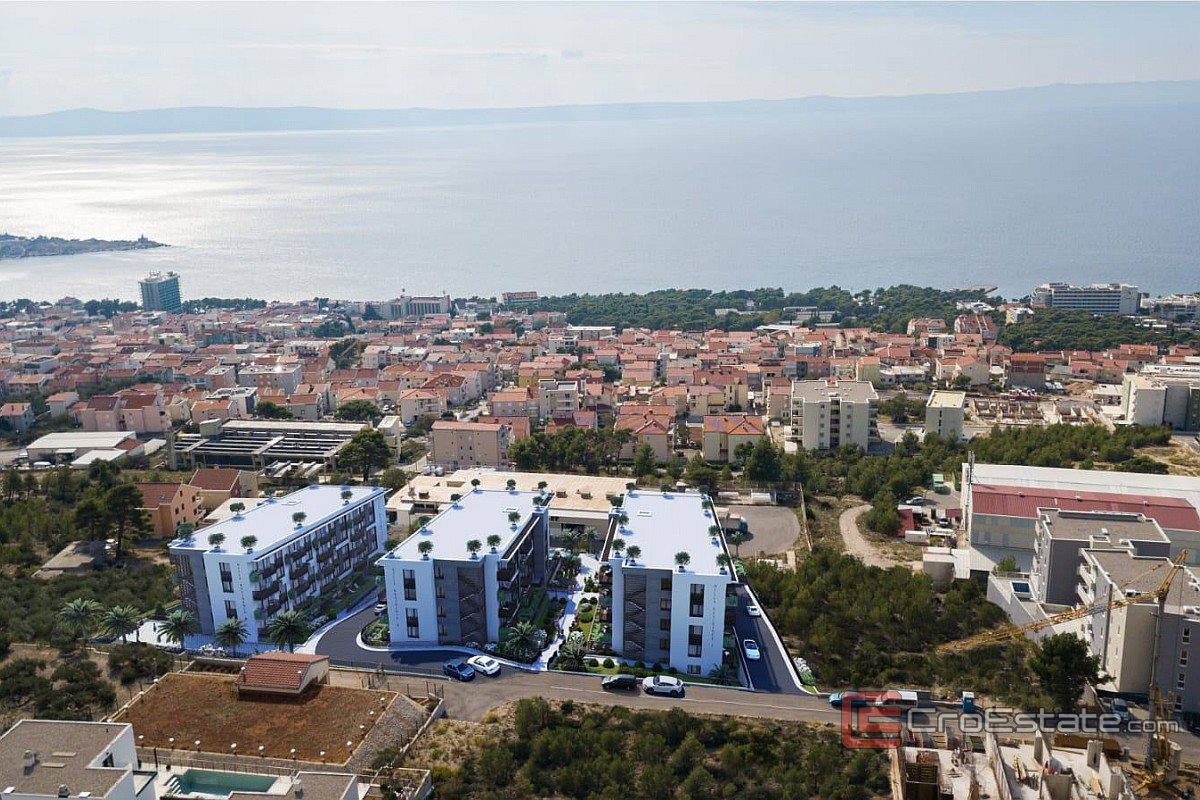 A modern apartment for sale in a complex of three residential buildings, near the sea in Makarska. It is only a few minutes walk from the town center. The apartment is southwest-facing and is located on the second floor of the building.