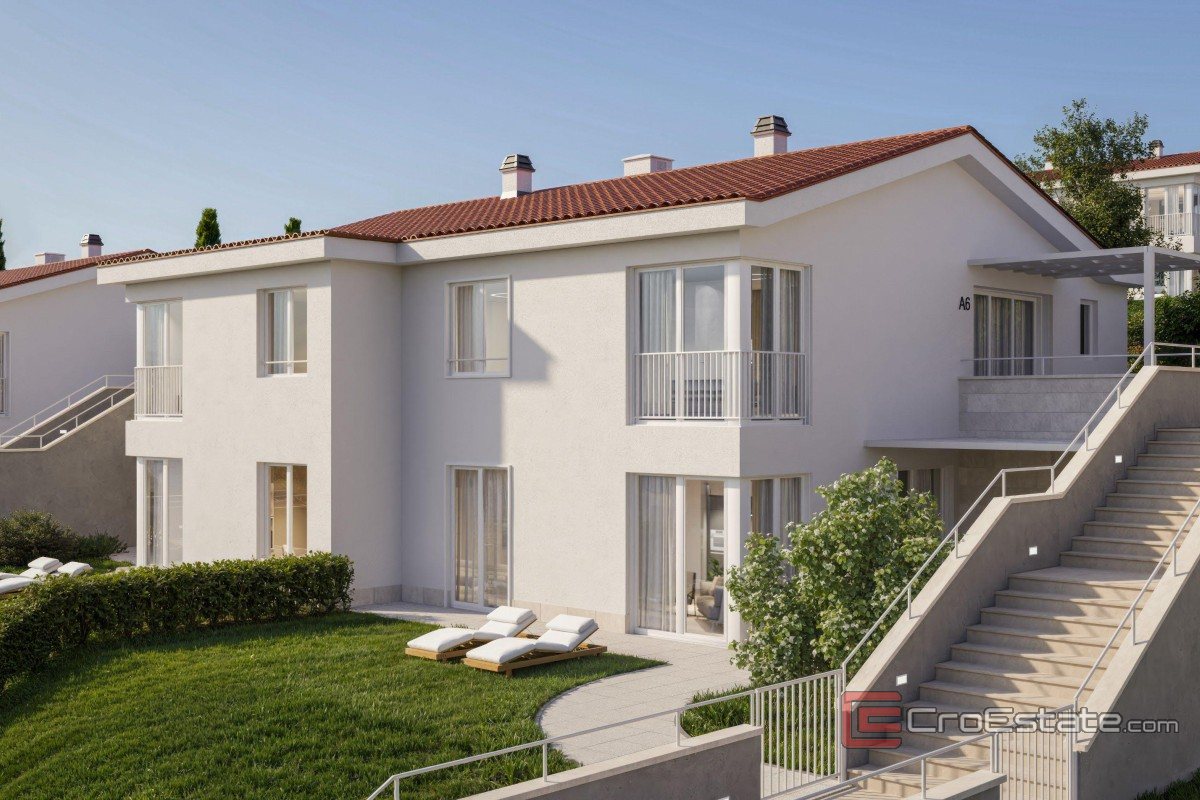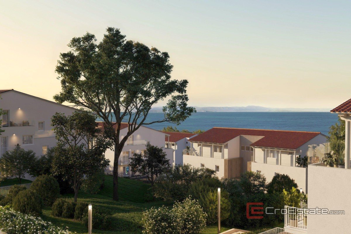 In the second row to the sea, there is a two-bedroom ground floor apartment with a net area of 66 m² with an additional 6 m² of outdoor space.