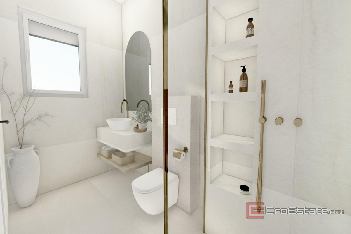 For sale is an extremely attractive building plot located in the second row to the sea, with a valid building permit for the construction of a modern luxury villa with a total gross area of 300 m² (basement, ground floor and first floor).