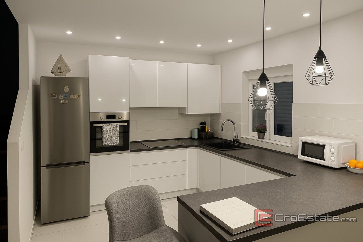 In the quiet Dalmatian village of Naklice, not far from Omiš, a modern detached house of recently completed construction is for sale.