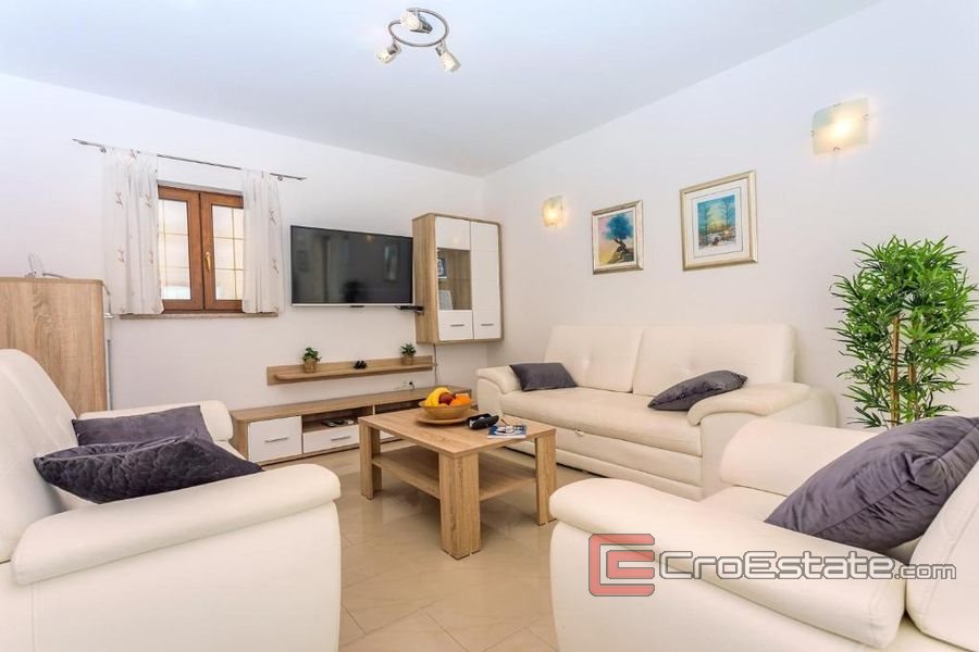 The ground floor has a bedroom, one bathroom, fully equipped kitchen with dining area, spacious living room with access to the terrace and pool.