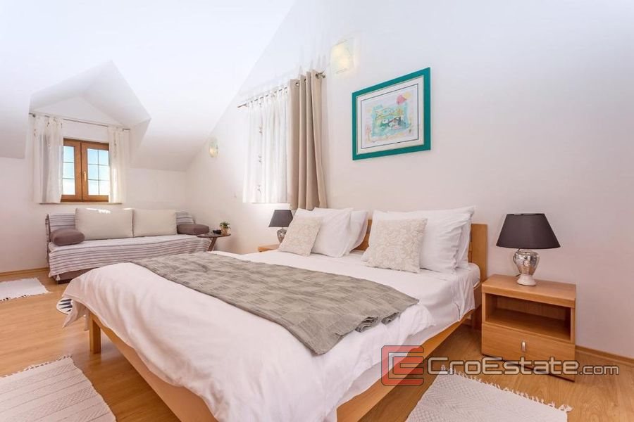 The property with a living area of 186m2 is built on a plot of 622m2 and spreads over two floors.
