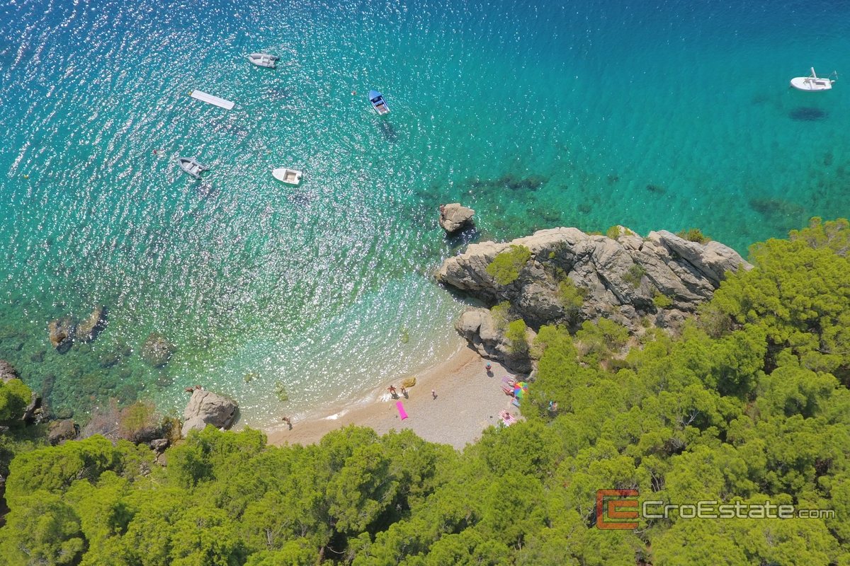 Omiš riviera house in the first row to the sea above a beautiful beach with crystal clear sea.
