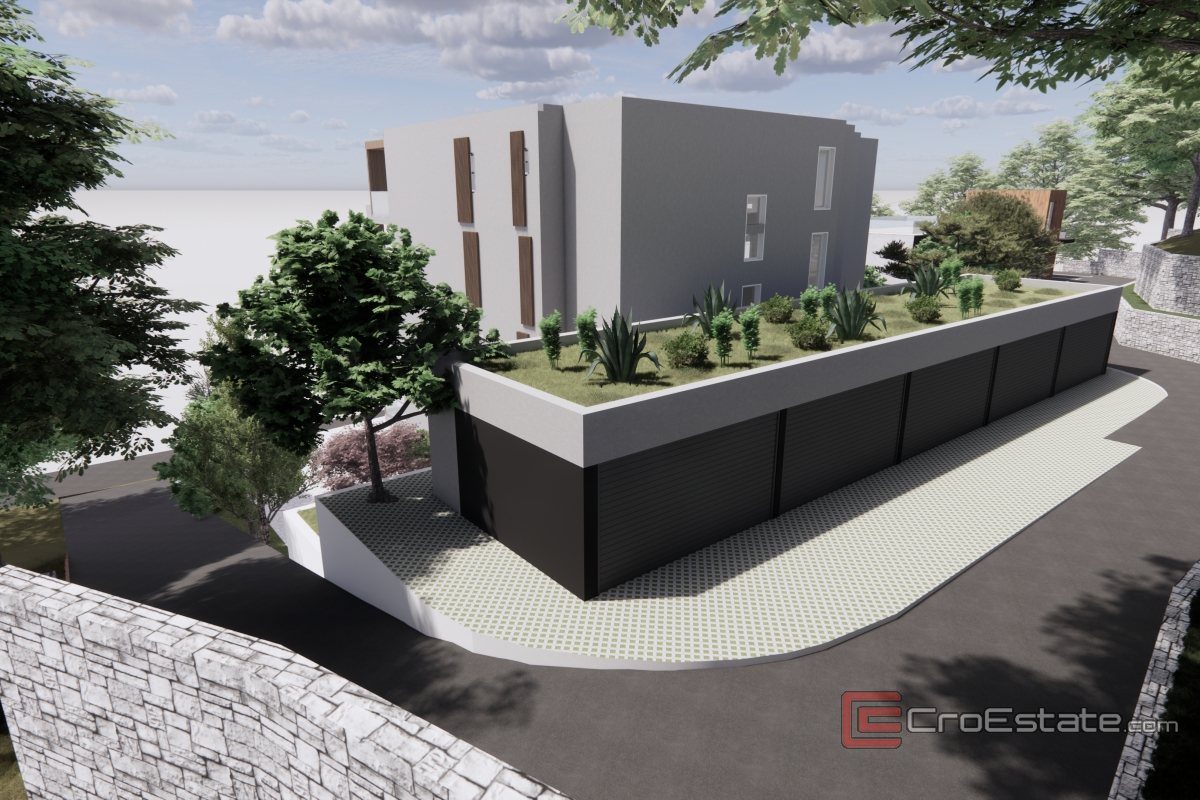 For sale is a plot of land with a total area of 1594 m2 with a project and a permit for the construction of a modern residential building with a sea view. The property extends over a total of four floors and has a total living area of 1,214.69 m2. There are two-bedroom and three-bedroom apartments - a total of 12 apartments, with a kitchen, living room, bathroom and a balcony facing south.