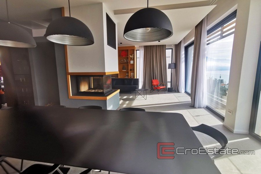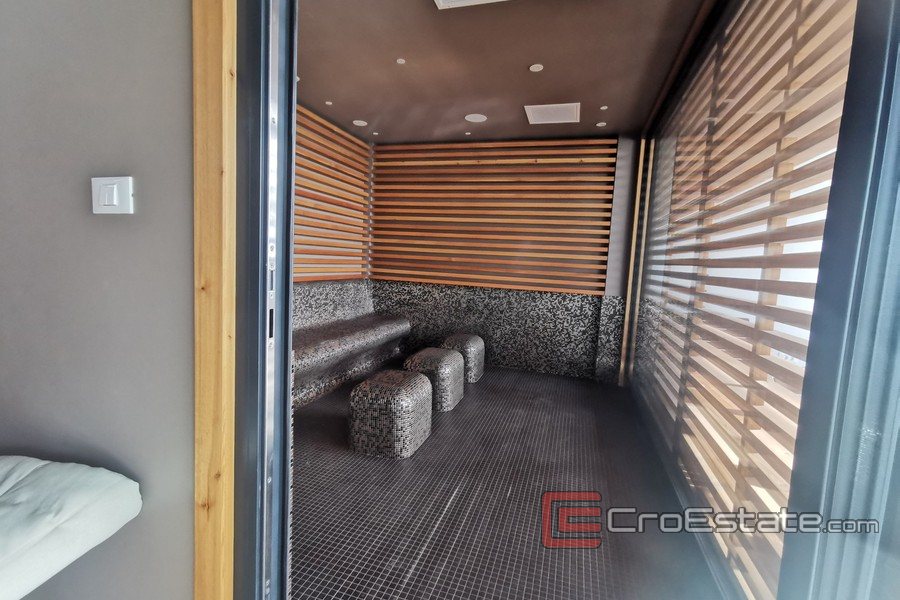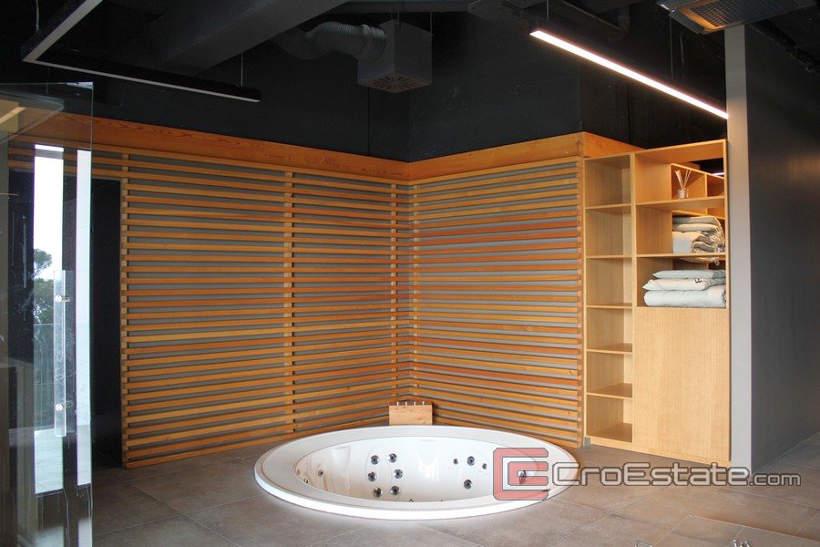 The villa has 297 m2 of living space and consists of a ground floor, two floors and a large roof terrace with an ideal view of the central Dalmatian archipelago. The villa on the ground floor has 4 covered parking spaces with a charging station for electric vehicles and a unique thermal maze.