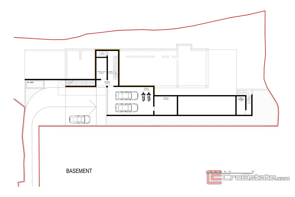 This luxury villa is located in a quiet residential complex near Omiš, on a spacious plot of 1,400 m², offering the perfect combination of elegance and practicality.