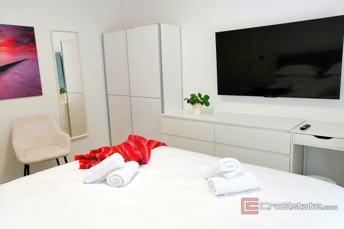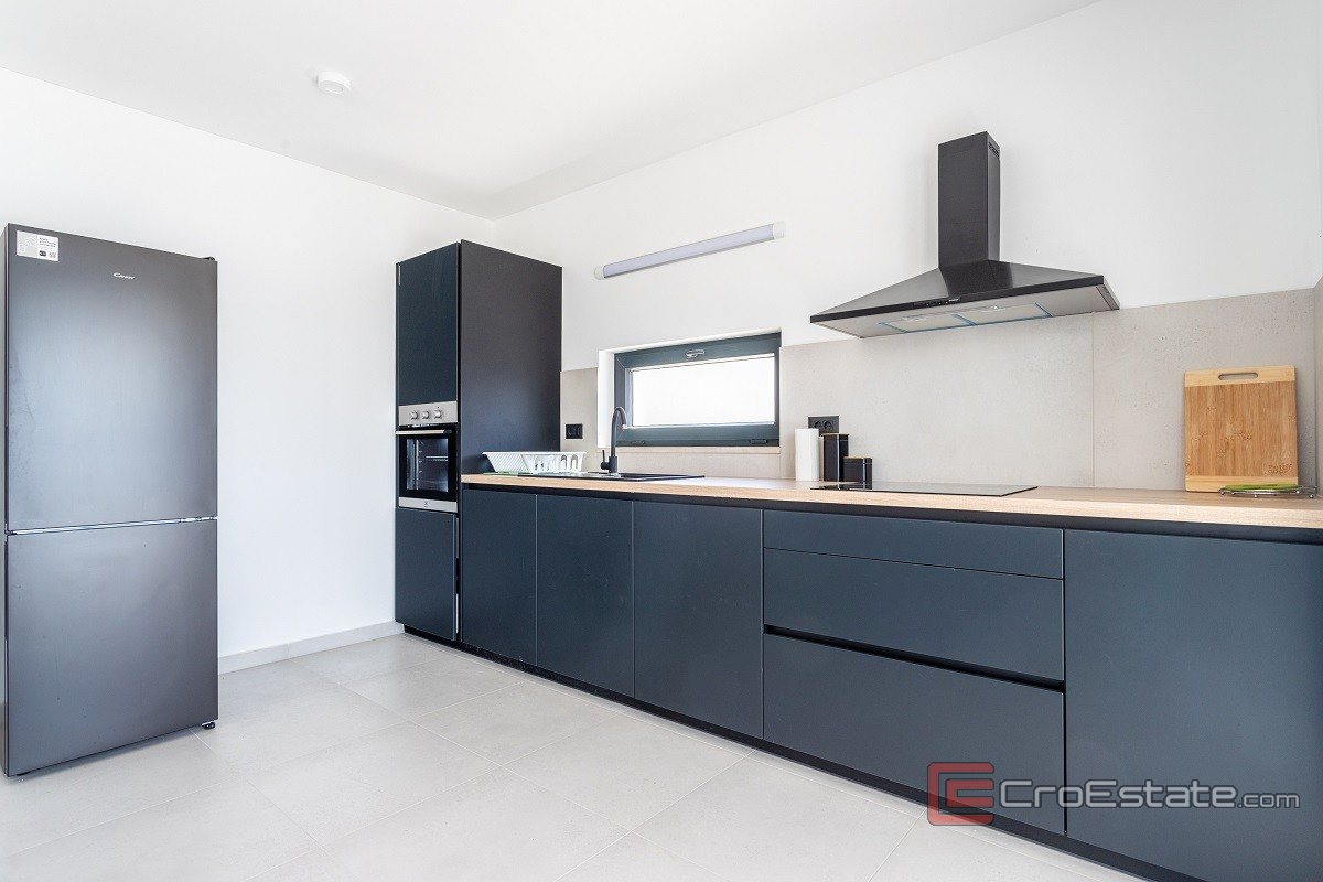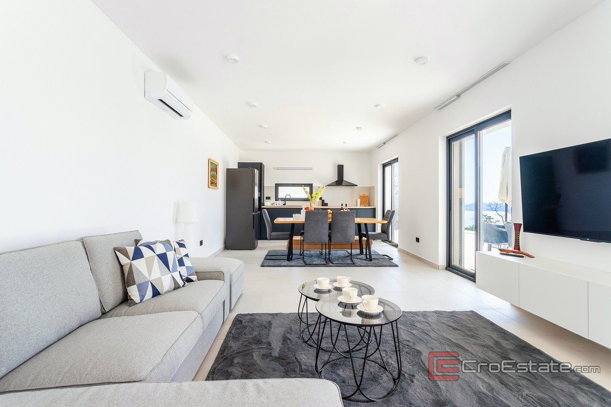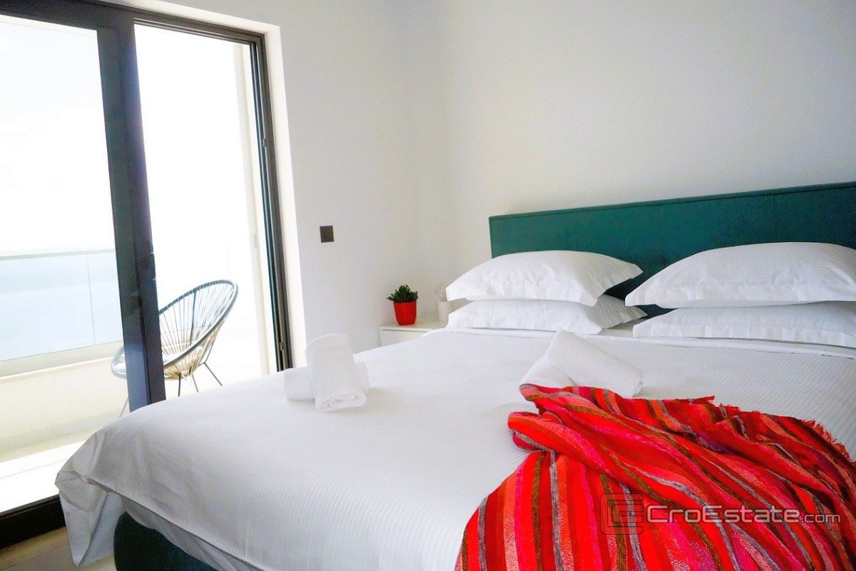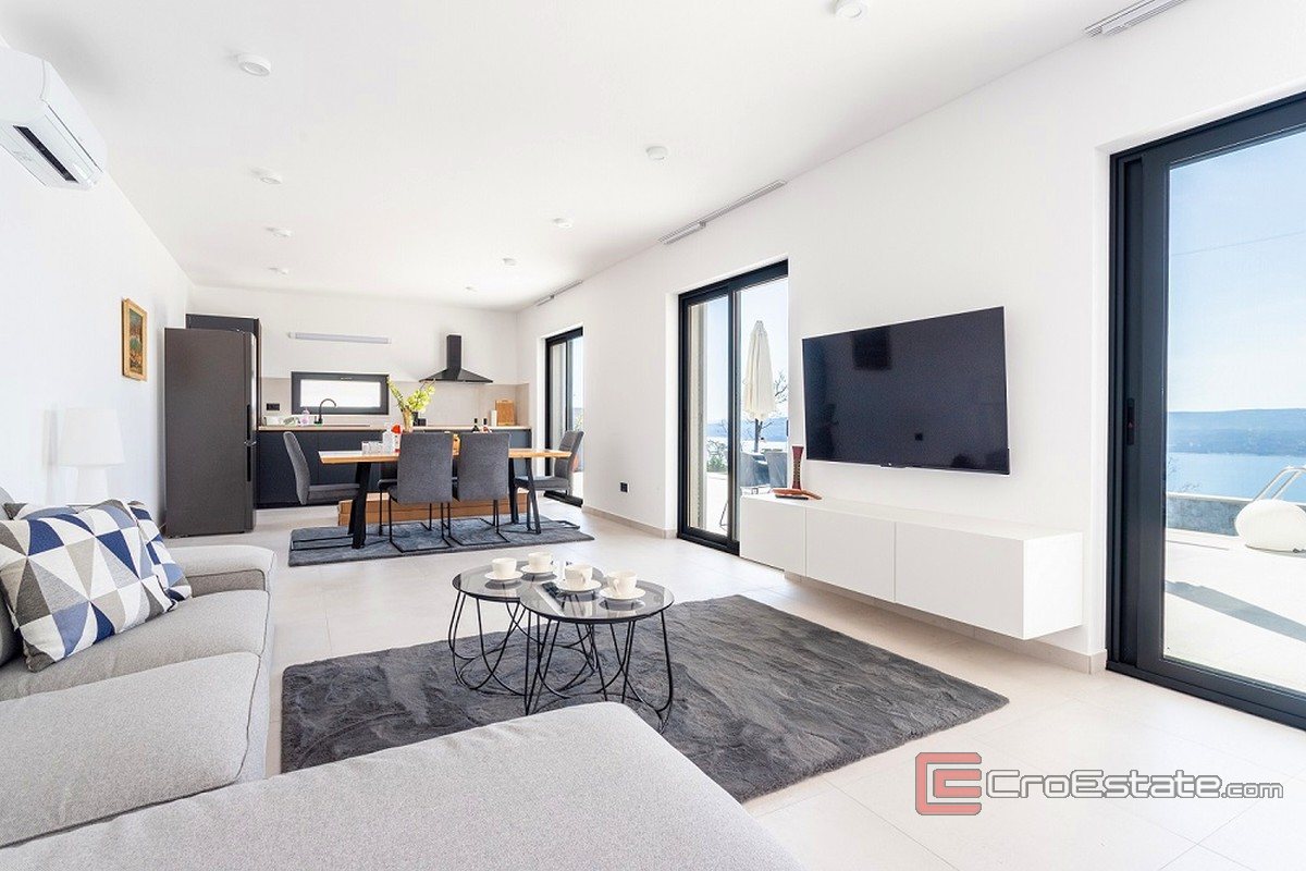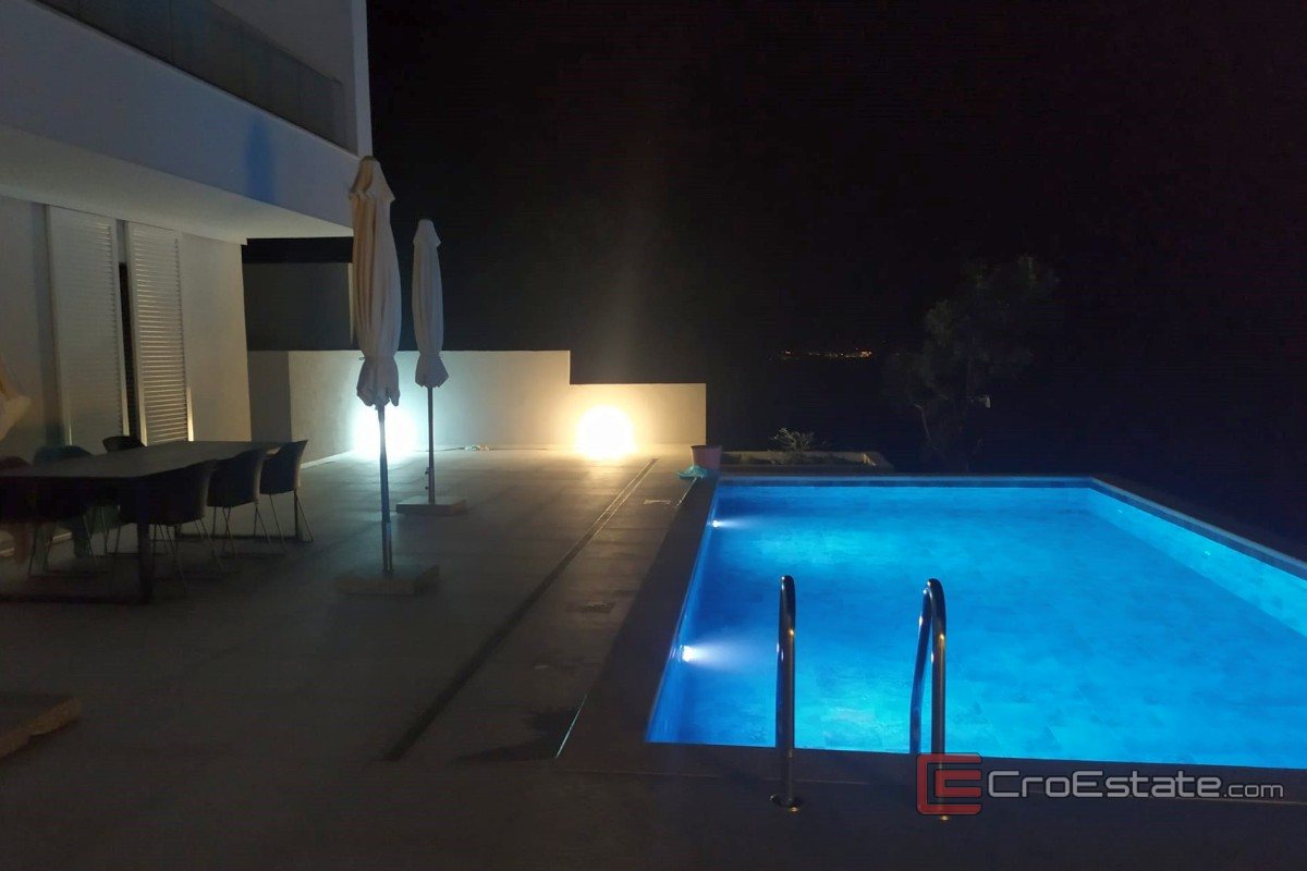 An excellent villa near Omiš, which boasts a panoramic sea view and modern comfort. It is spread over two floors, which have an elegant kitchen, airy living spaces, three bedrooms with balconies and an additional room with its own bathroom. Outside, there is a swimming pool, a sunbathing area on the terrace and a children's playground.