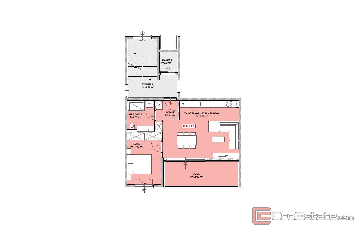 For sale is an apartment of 58 m², located on the second floor of a modern new building with an elevator, in the immediate vicinity of the sea. The living room with kitchen and dining room forms the center of the home, while one bedroom provides privacy and comfort. The living room opens onto a loggia that offers a pleasant corner for relaxing and enjoying the outdoors with a view of the sea.