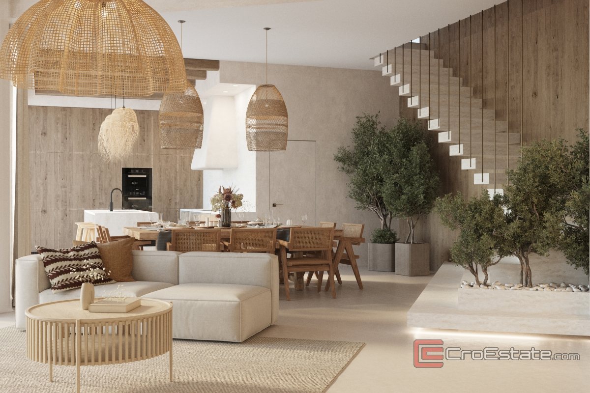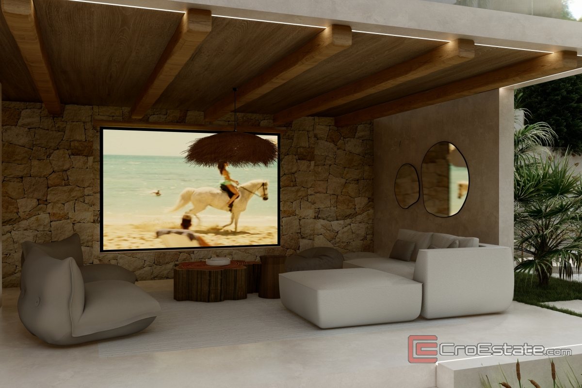 Top quality materials were used during the construction of the property, and the interior was designed with an emphasis on functionality and aesthetics. The entire property is decorated in wabi-sabi design, a well-known Japanese decorating style. The villa is equipped with a smart control system, underfloor heating, security doors, video surveillance, which ensures maximum comfort and security, electric curtains, solar panels on the roof of the property, sunguard glass...