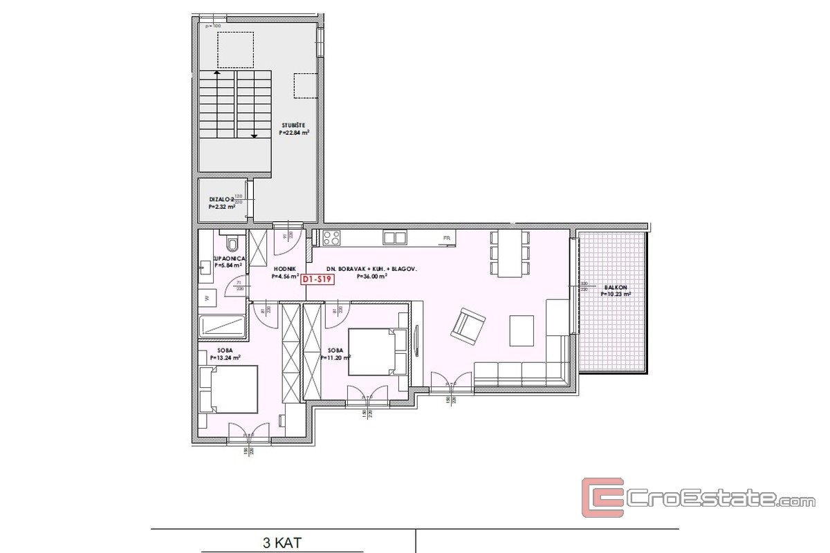 For sale is an apartment of 76 m², located on the third floor of a modern new building with an elevator, in the immediate vicinity of the sea. The living room with kitchen and dining room forms the center of the home, while two bedrooms provide privacy and comfort. The living room opens onto a loggia that offers a pleasant corner for relaxing and enjoying the outdoors with a view of the sea.