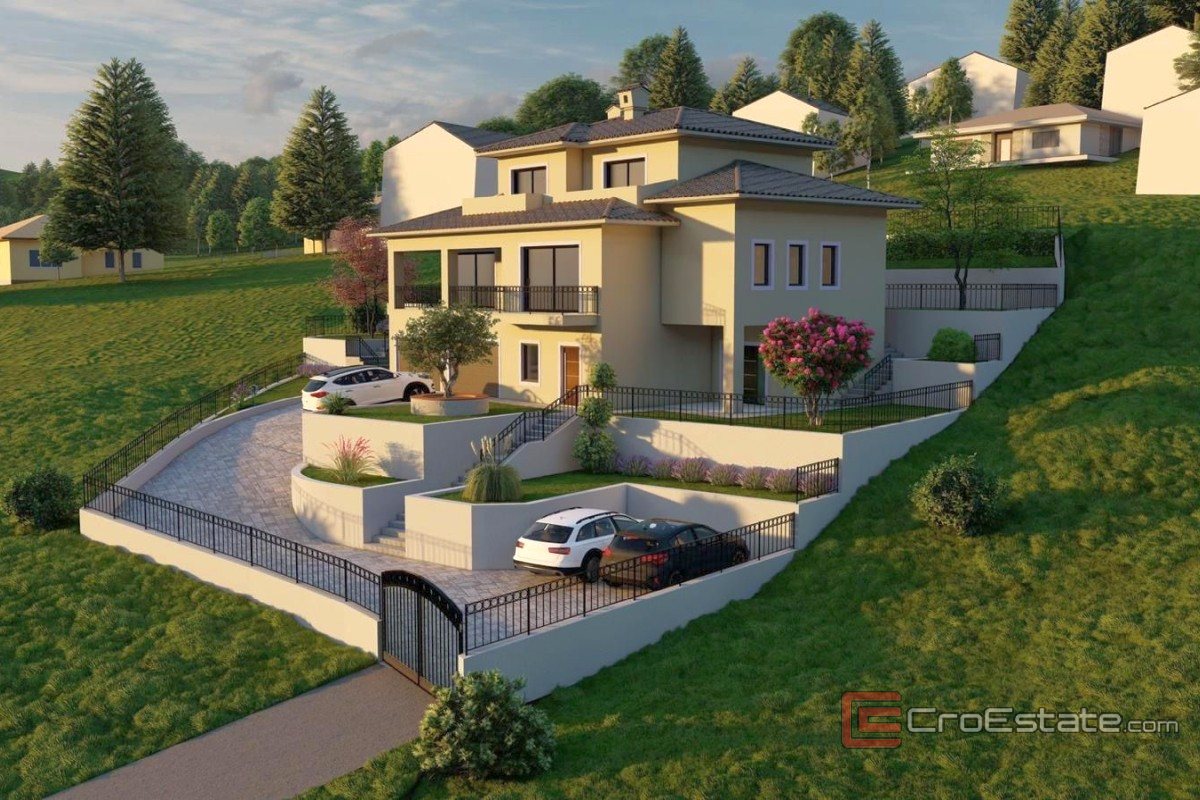 Building plot of 1053 m² for sale with a project for a modern villa and swimming pool. The building permit is in progress. The plot is located in a quiet location, 700 m from the sea, with an open view and south orientation.