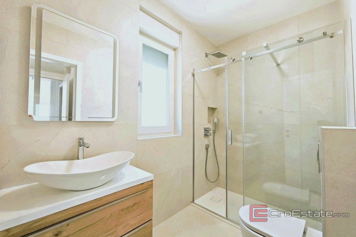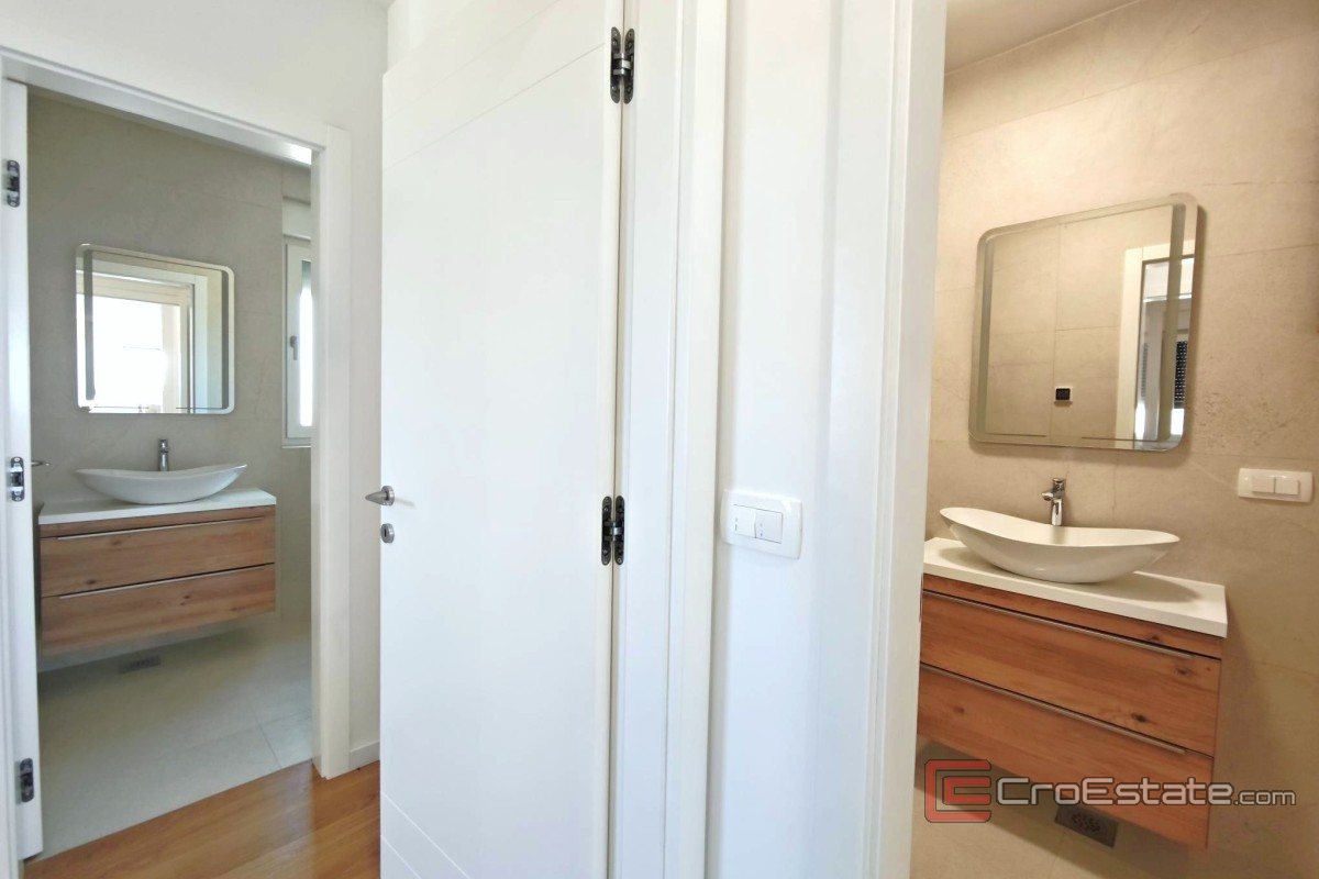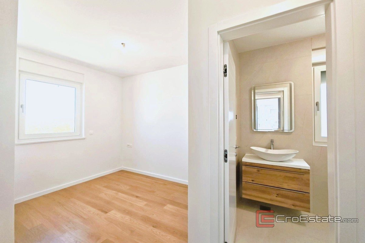The apartment is located in a new building, a smaller building with only six units, which ensures peace and privacy. The total area of 85 m² includes 70 m² of interior space and a covered terrace of 18 m² with sea views, and additional value is provided by two parking spaces with electric vehicle connections.