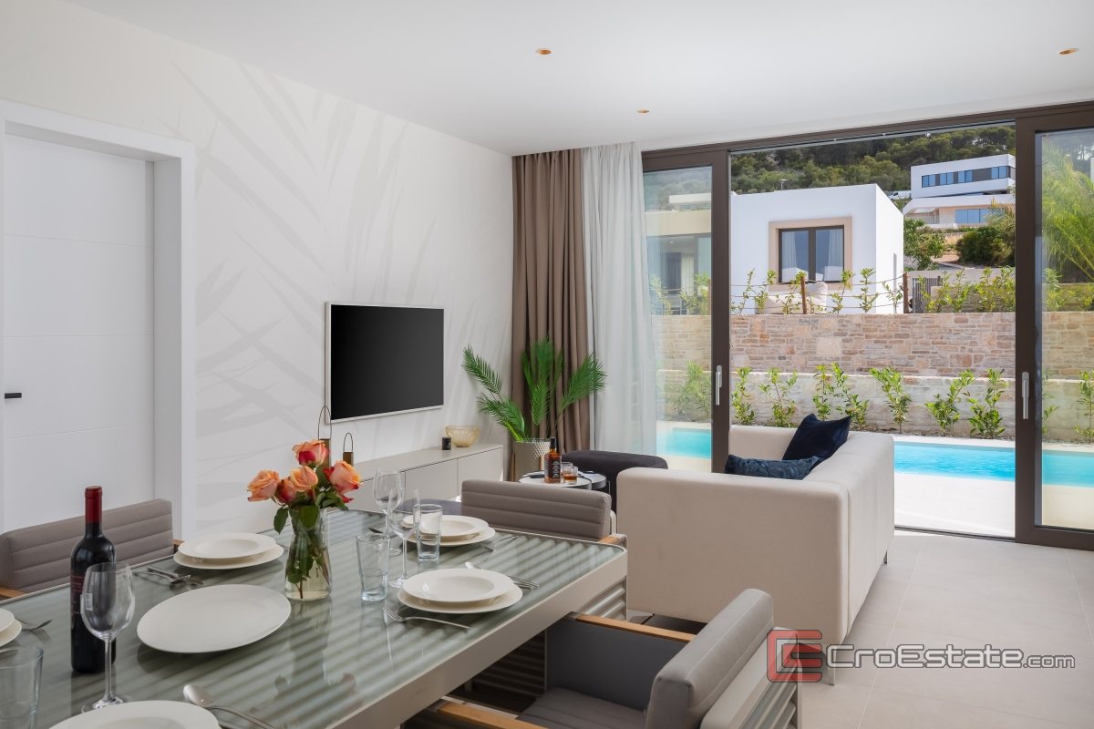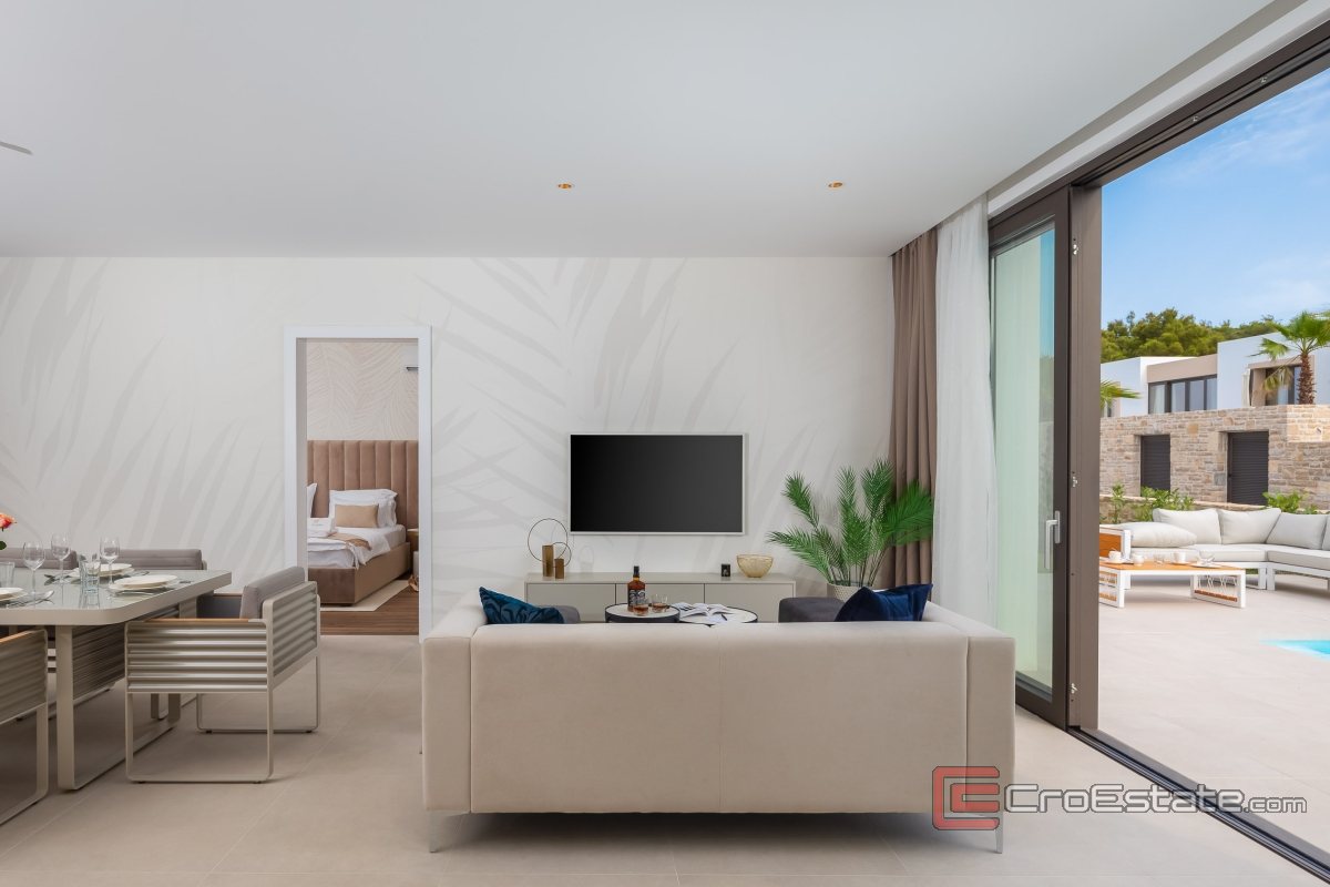 Modern villa located on the island of Pašman offers the perfect combination of luxury and peace. This villa, located first row to the sea, ensures a top-notch stay thanks to its design and setting. Surrounded by nature, other modern villas and clear sea, the location ensures complete privacy.