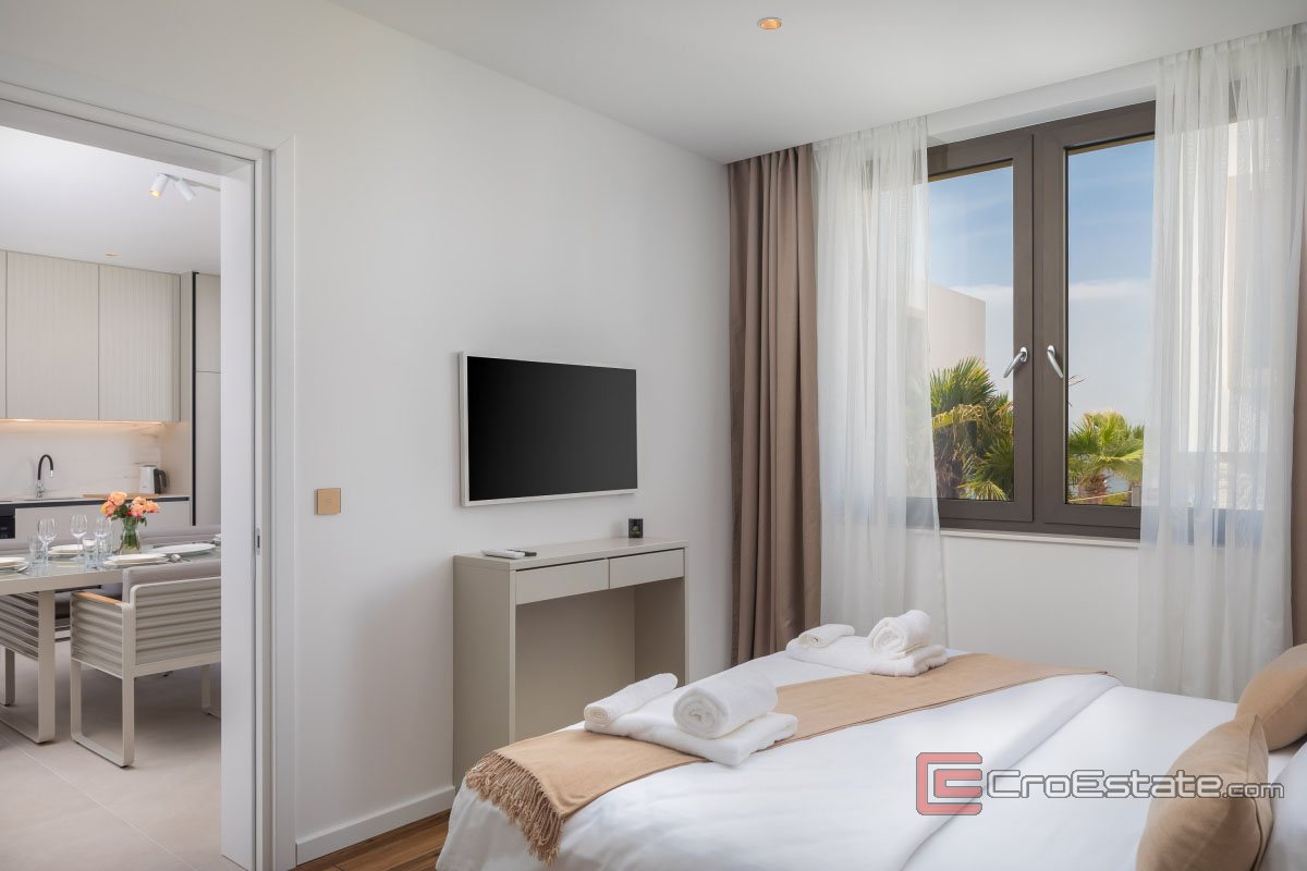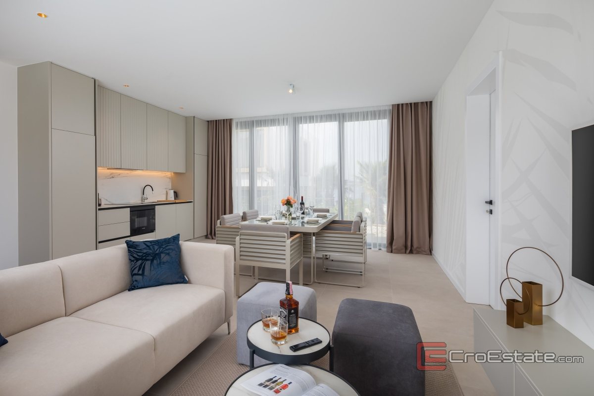 When building the property, the highest quality materials were used, with special attention to every detail, achieving the ideal balance between elegance and functionality. The villa is equipped with underfloor heating, security doors... Future owners have the right to use all the resort's services, including a swimming pool by the beach, a water park in the summer months, a reception and a restaurant...