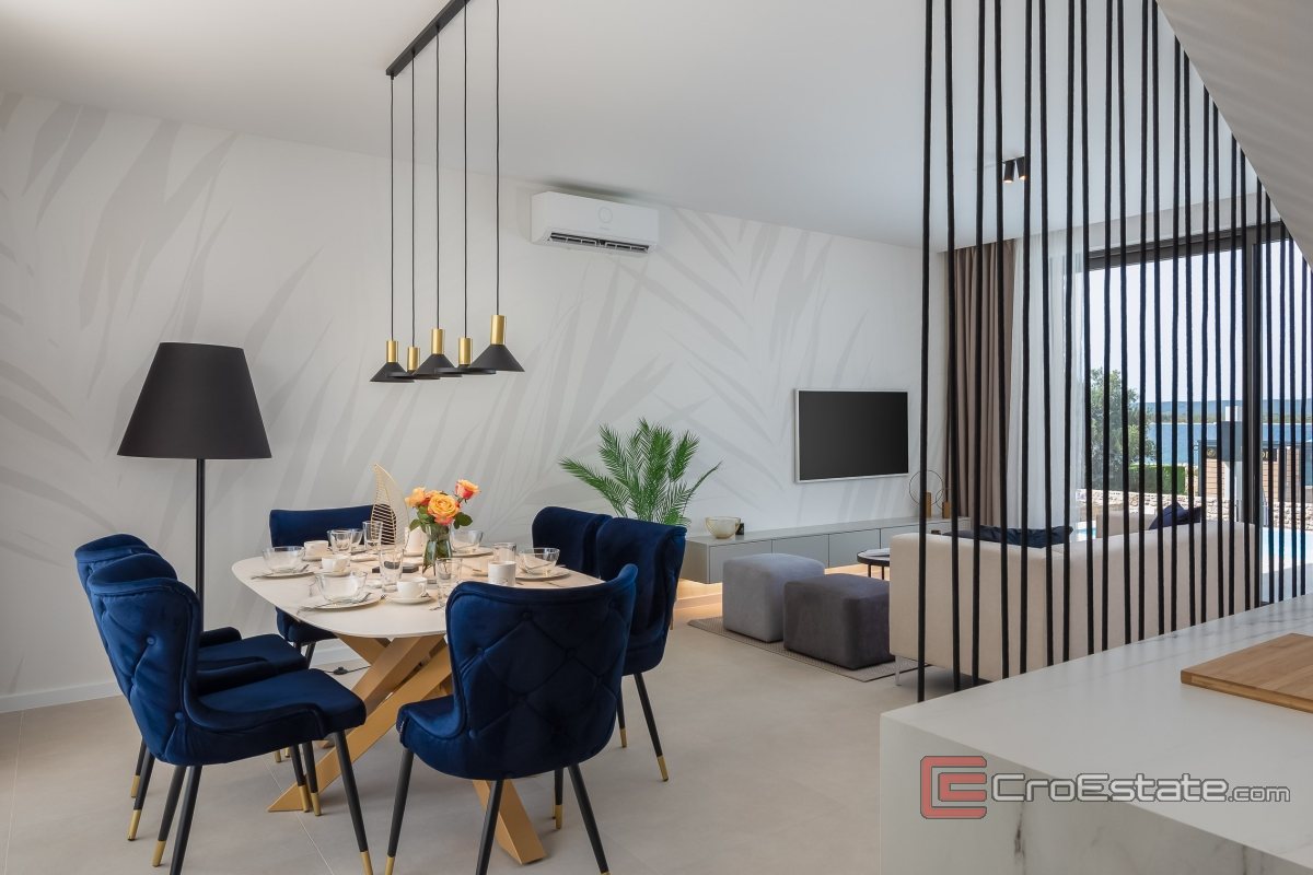 A unique villa located on the beautiful island of Pašman offers the perfect combination of luxury, privacy and peace. This elegant villa, located first row to the sea, ensures a top-notch stay thanks to its sophisticated design. Surrounded by natural beauty, other modern villas and clear sea, the location guarantees complete privacy and exclusivity.