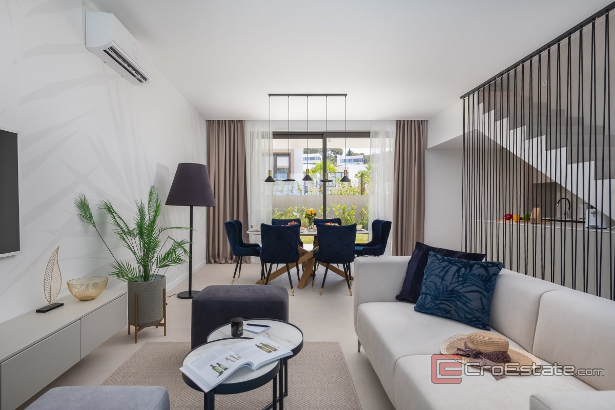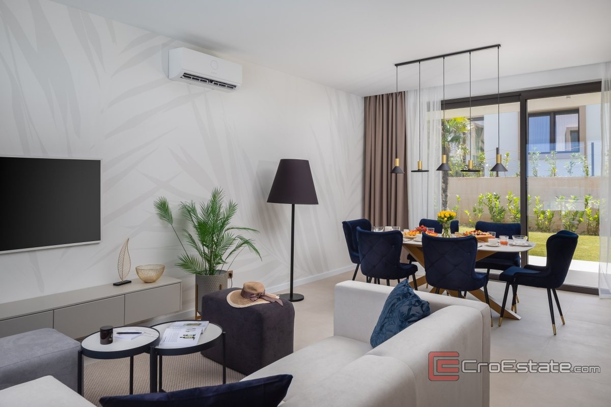 The highest quality materials were used in the construction of the villa, with special attention to every detail, which achieved the ideal balance between elegance and functionality. The villa is equipped with underfloor heating, security doors... In addition, future owners have the right to use all the resort's services, including a swimming pool by the beach, a water park in the summer months, a reception and a restaurant, which further enhances the luxurious experience.