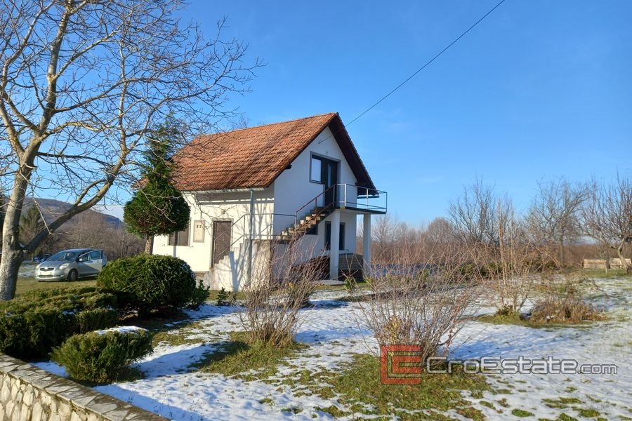 A house on two floors with a living area of approx. 92m2 near the Plitvice Lakes. Built in 1995, it has a ground floor where there is a kitchen and a living room, one bedroom and a bathroom, while the first floor has two bedrooms, one bathroom and a storage room.