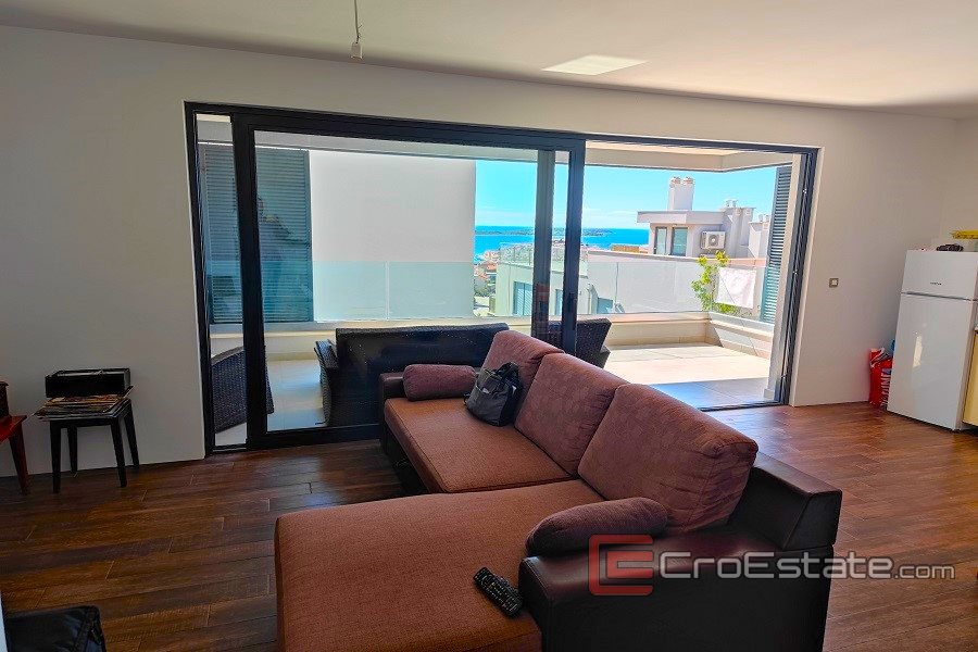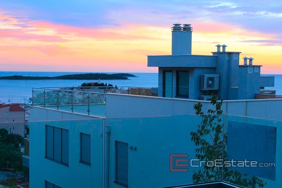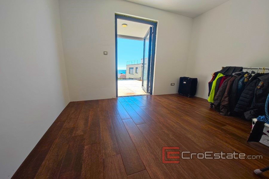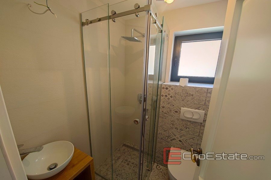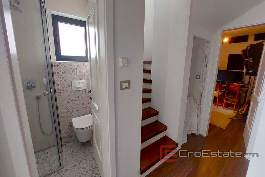 On the first floor there is a dining room and a living room with access to a large terrace with a view of the sea and the old town, a kitchen, a bedroom with its own bathroom, an additional small toilet and a dressing room.