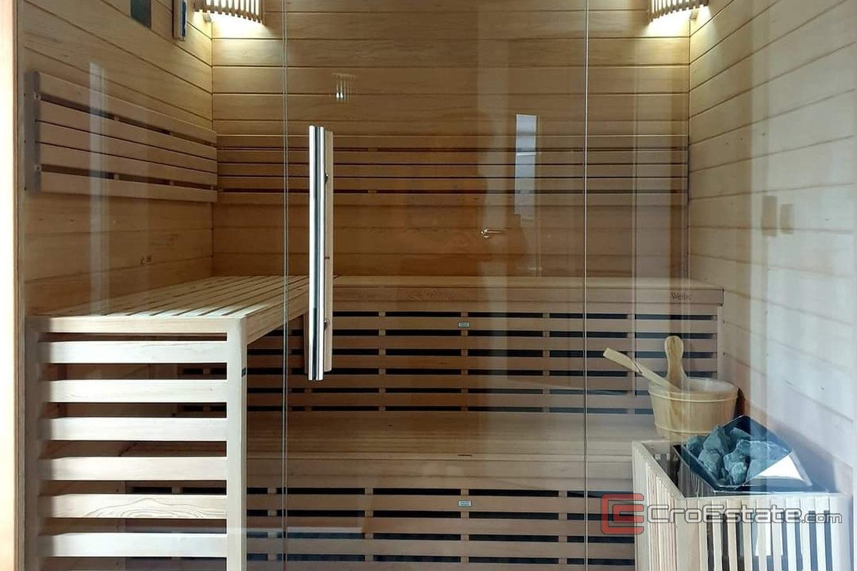 A special feature of this part of the house is the glazed winter garden, which provides special comfort on cold days. The ground floor also has a hallway with a gallery, a storage room and a wellness room with a Finnish sauna and a jacuzzi.