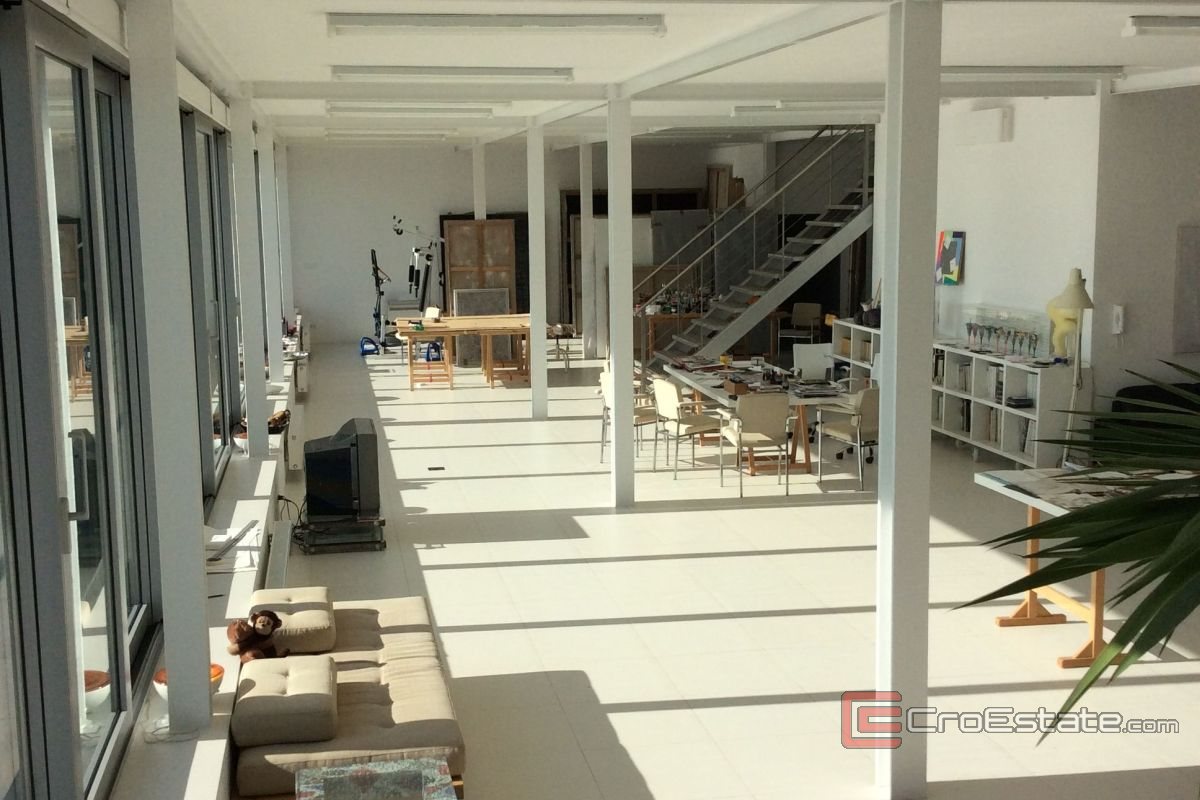 On the first floor there is a bathroom and a spacious work area, which, if necessary, can easily be converted into additional bedrooms for guests or as a wellness area.