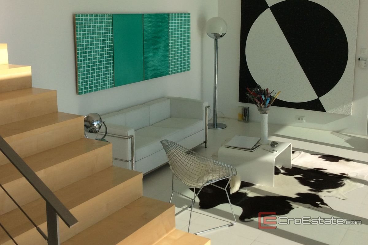 The third floor consists of two bedrooms, each with its own bathroom, and additional space for relaxing and socializing. All floors are connected by internal stairs and an elevator, which enables full functionality and comfort.