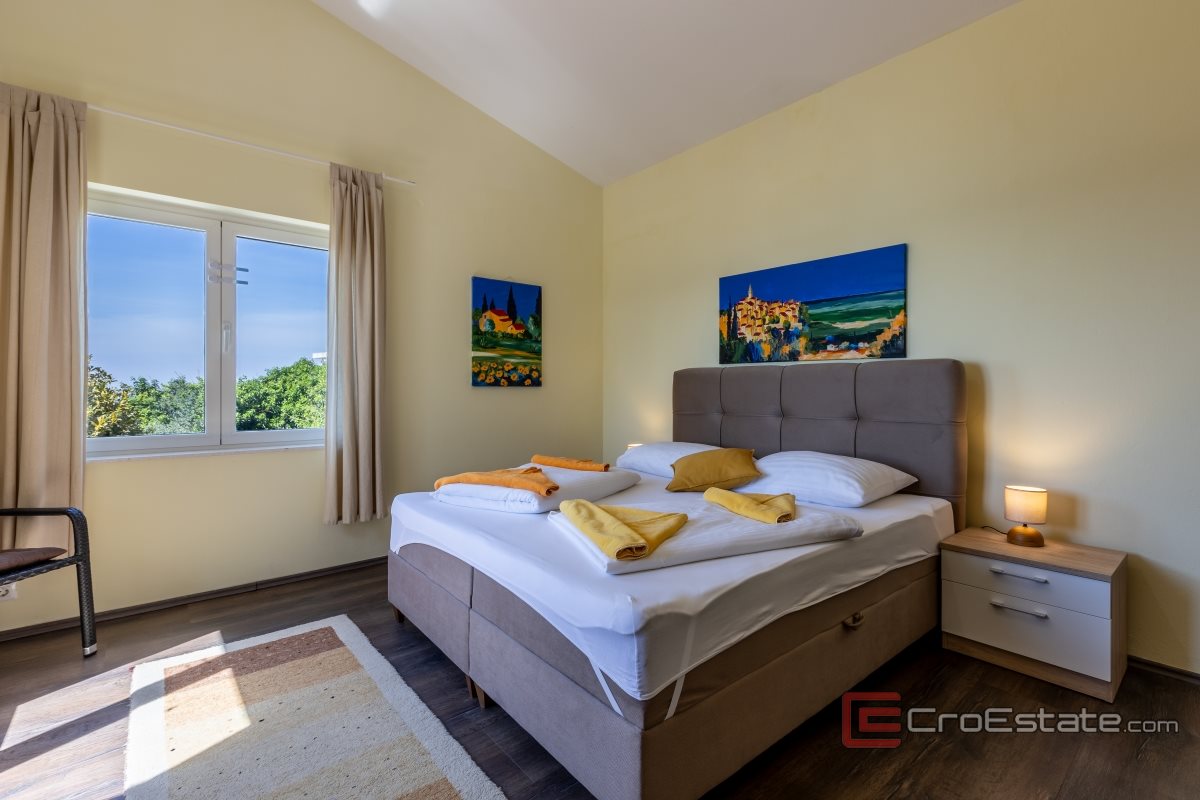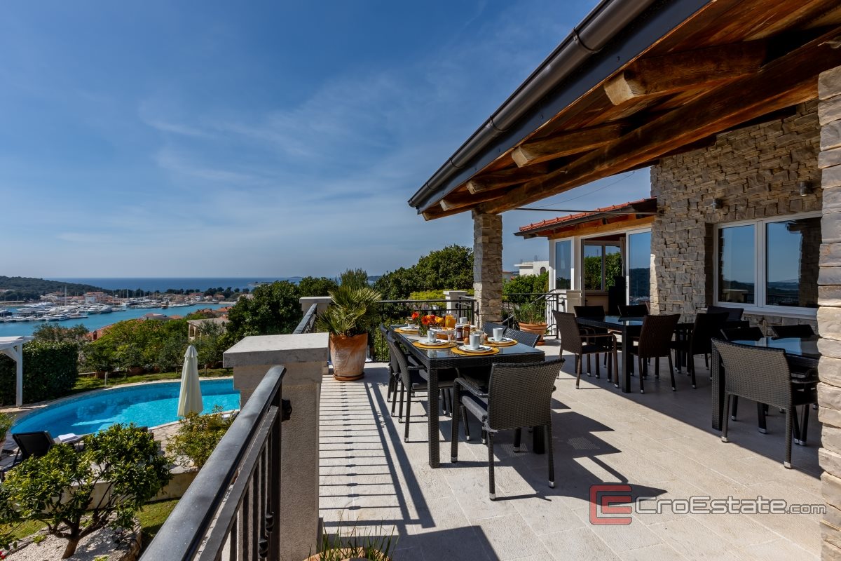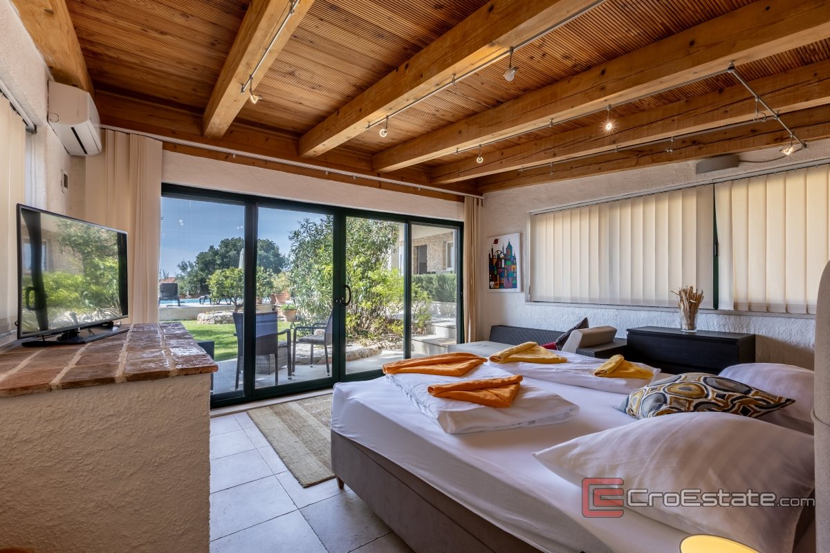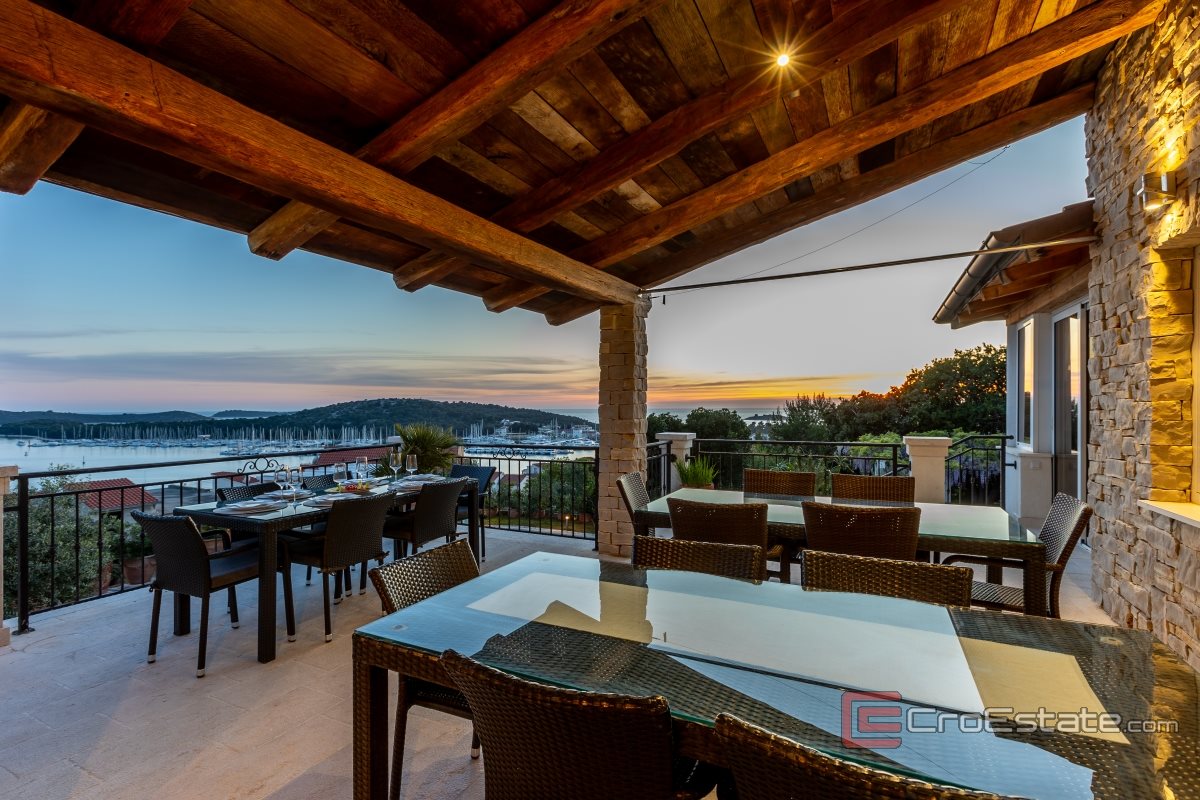 This rustic villa is located on a plot of land measuring 1170 m2 and has 379 m2 of living space. And two additional buildings where two additional apartments are located. This villa boasts a rustic style that emphasizes natural materials such as stone and wood, and at the same time has large glass walls, which allow additional light and an inspiring view of the sea from almost every room.