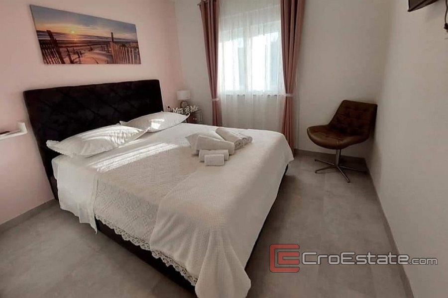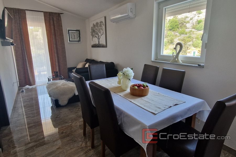 A semi-detached apartment house is for sale, located in the second row, only 30 m from the sea, with a living area of 240 m2 and a garden of 230 m2 with a beautiful view of the sea. The property is an ideal opportunity for those who want to enjoy the proximity of the sea and a beautiful view of the sea, with plenty of space for a comfortable life or vacation.