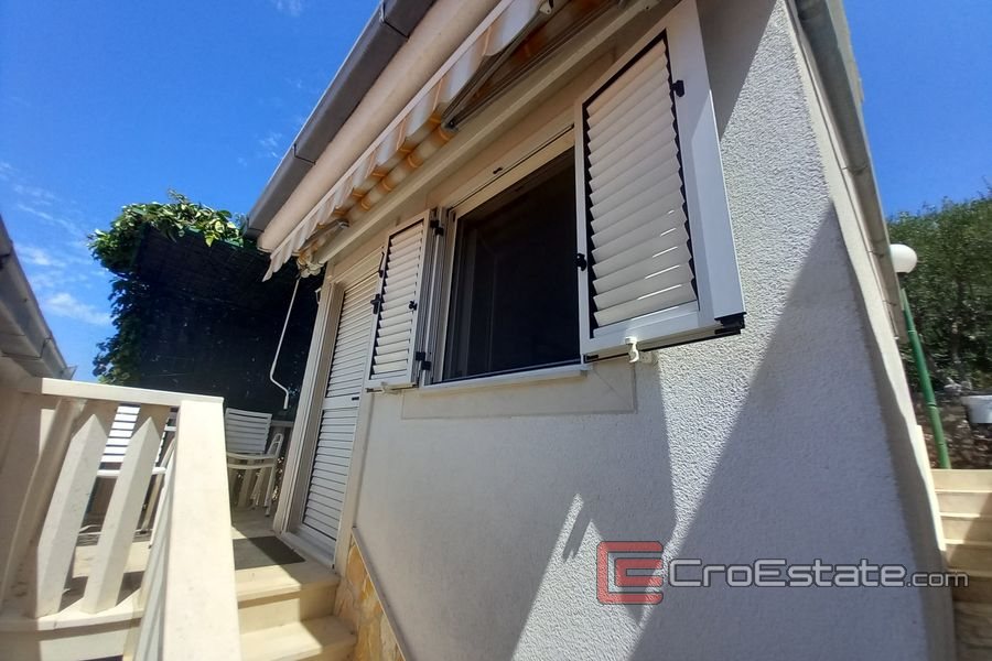 The house has two independent studios, including an outdoor terrace, a room, a bathroom and a kitchen. Under the parking lot there is a basement of 26 m2 with space for 4 cars. The plot of land of 542 m2 is located in the second row from the sea, and its position offers an excellent opportunity for further investments in real estate and the construction of a villa with a swimming pool. The pleasant Mediterranean climate, with plenty of sunny days every year, makes this bay an ideal summer location. The location of the house exudes an atmosphere of complete relaxation, which can be especially felt on the terrace, which is filled with the aromas of rosemary, sage, thyme and other plants endemic to the Mediterranean area.