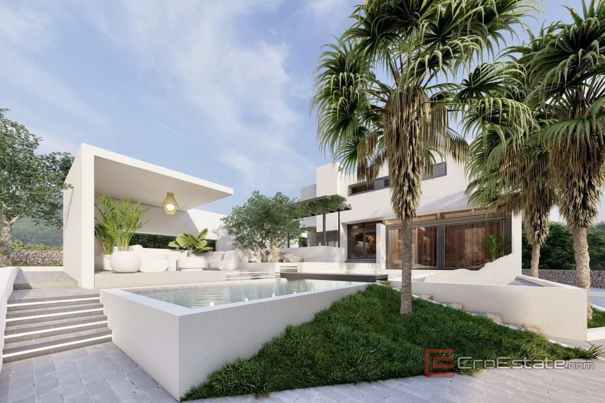 In a quiet part of Rogoznica there is a modern villa with a total living area of 237 m², located on a plot of 1,080 m². This property is characterized by a modern architectural expression, quality equipment and a functional layout that allows for a comfortable stay with a high level of privacy. From several floors there is an open panoramic view of the Adriatic Sea and nearby islands.