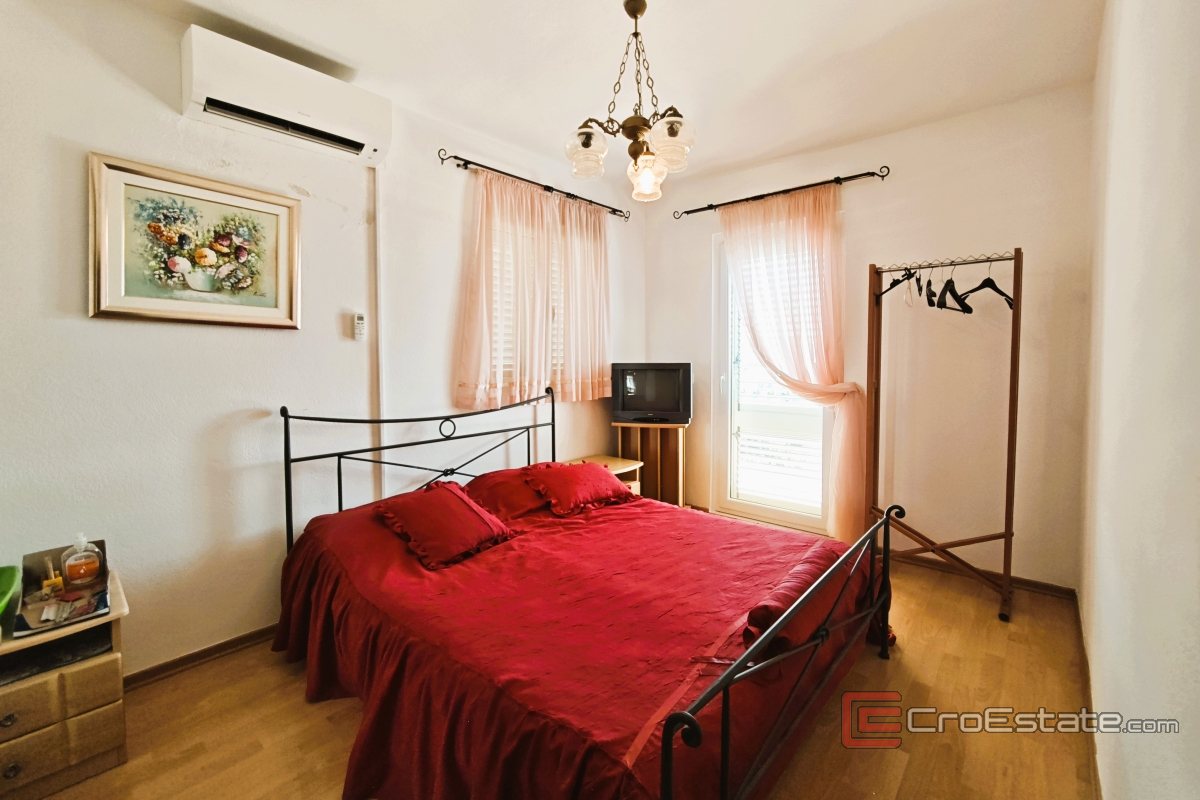 Just 70 meters from the sea, in a quiet place near Rogoznica, this villa with pool and spacious yard is located, surrounded by Mediterranean nature and an olive grove of 23 trees. The property is ideal for a family vacation and relaxation, but also as an investment in tourism.
