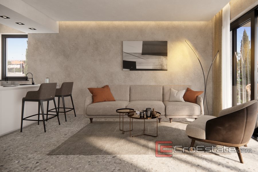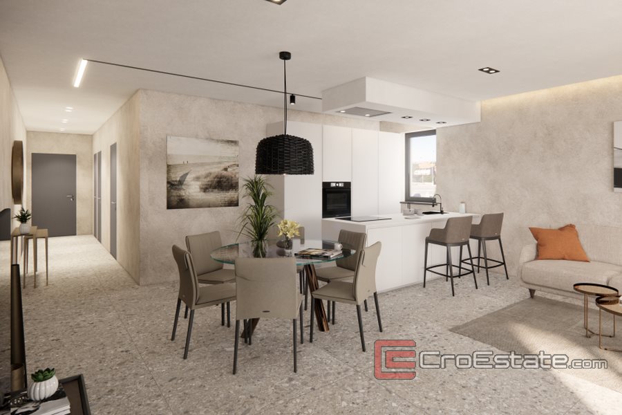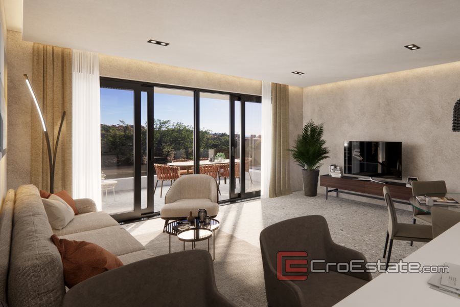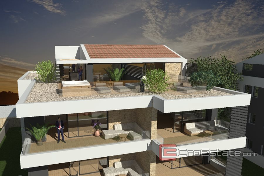 Near the center of Rovinj, in a newly built building on the last floor (third), a penthouse is available with a total living area of 220 m2.