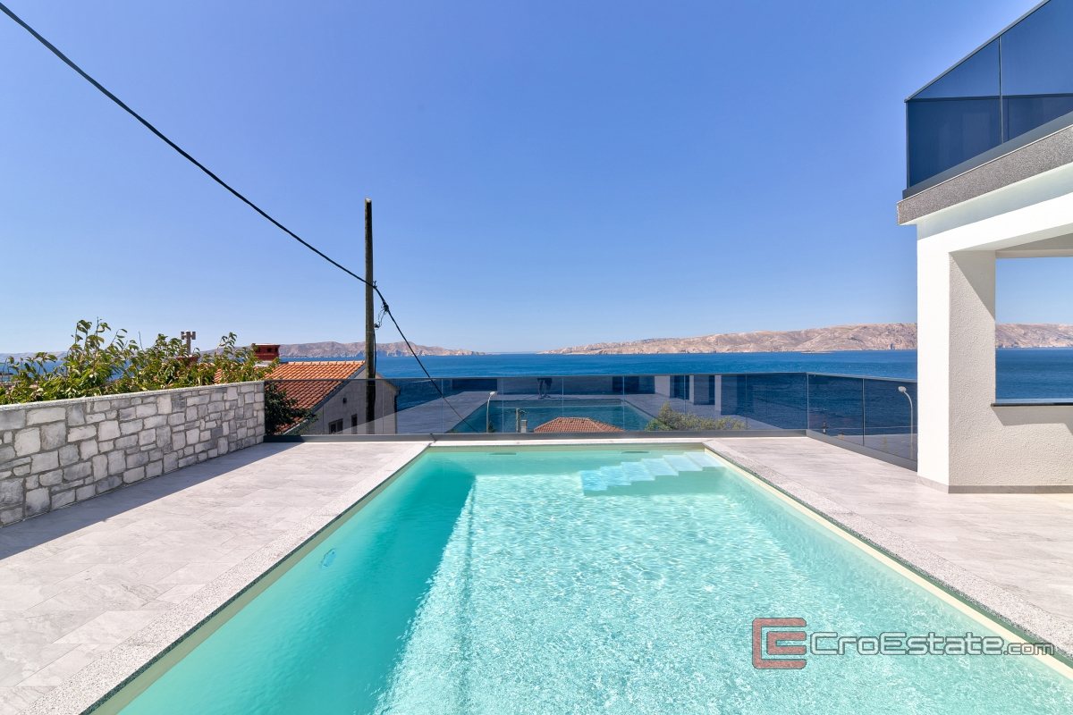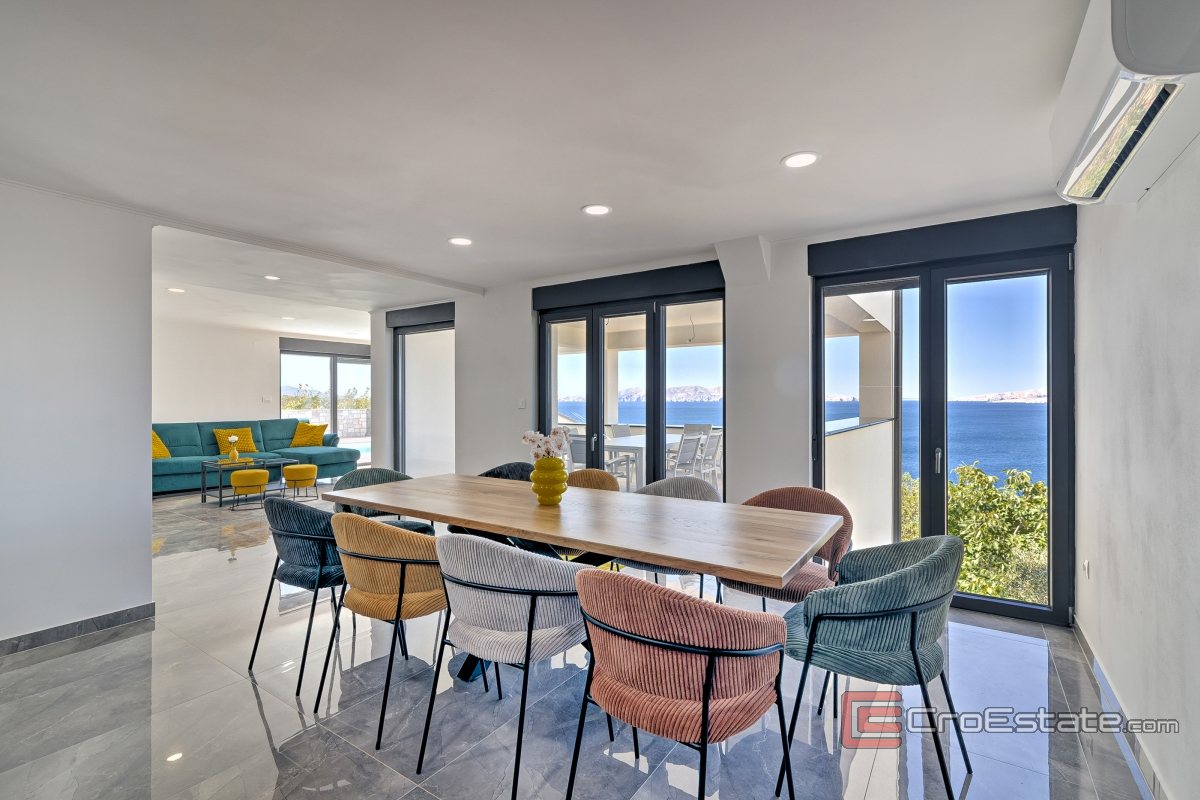 For sale is a modern and attractive villa located on a hill, with an open and enchanting view of the sea and the surrounding islands. The villa is located in the historic town of Senj, on a plot of approximately 450m2, while the living area itself is about 500m2 spread over three floors.