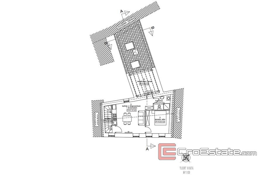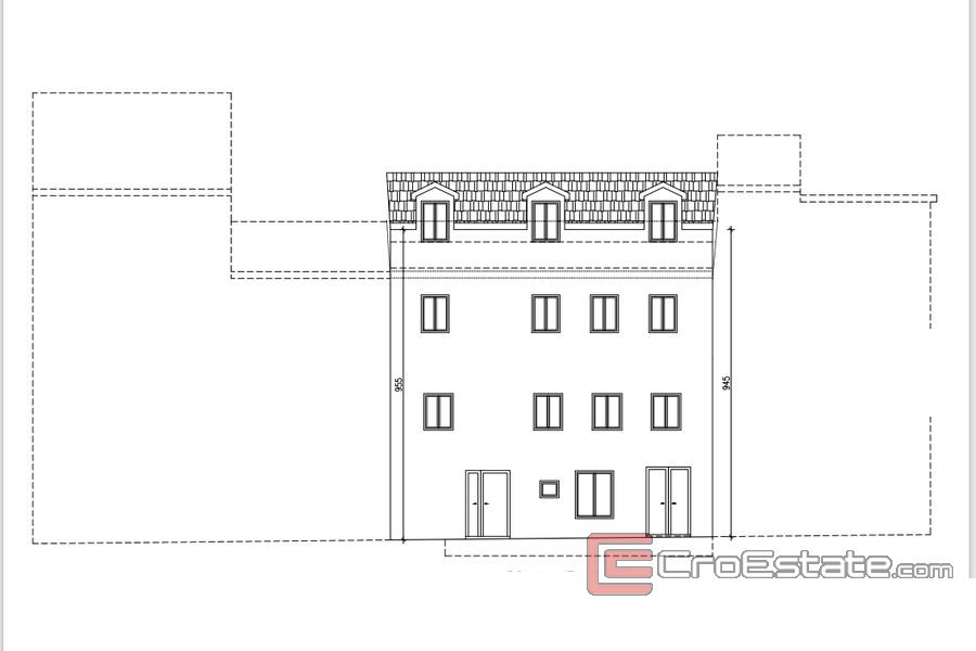 Reconstruction of the existing family building of P+2 floor plan into a P+3 floor plan building is planned. The living area is 215 m2, and it is located on a plot of land of 94 m2. A reconstruction permit has been obtained and there is a project for three apartments. The ground floor has an area of 66.54 m2 and consists of two rooms and a toilet. The first floor of 68.46 m2 consists of two bathrooms, two bedrooms, a kitchen with a dining room and a living room. On the second floor there is a kitchen with a dining room, a bathroom and a terrace, while the third floor is designed to have two bedrooms and one bathroom.