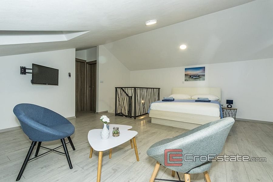 The attic - 45m2, has a bedroom, bathroom and a balcony on the east side.