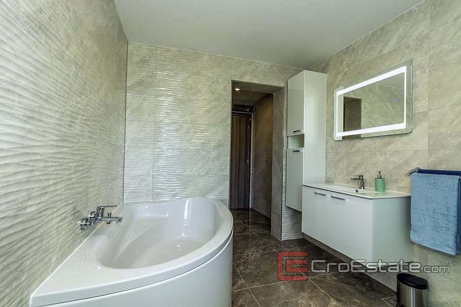 Ground floor - living room, 2 bedrooms, one of which has its own bathroom, 2 smaller bathrooms, 3 rooms currently used for entertainment, a gym and a billiard room, and a small storage room. On this floor there are also 2 balconies on the south side, and a heated pool of 8X4m2.