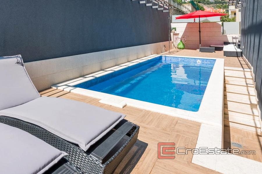 The garden is decorated with Dalmatian horticulture, while on the stone paved part behind the house there is a sun deck, outdoor shower and heated pool with the possibility of closing.