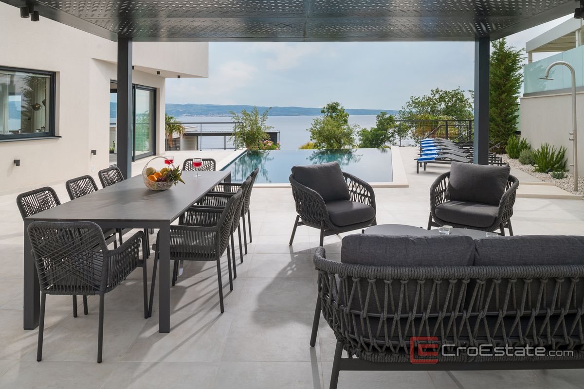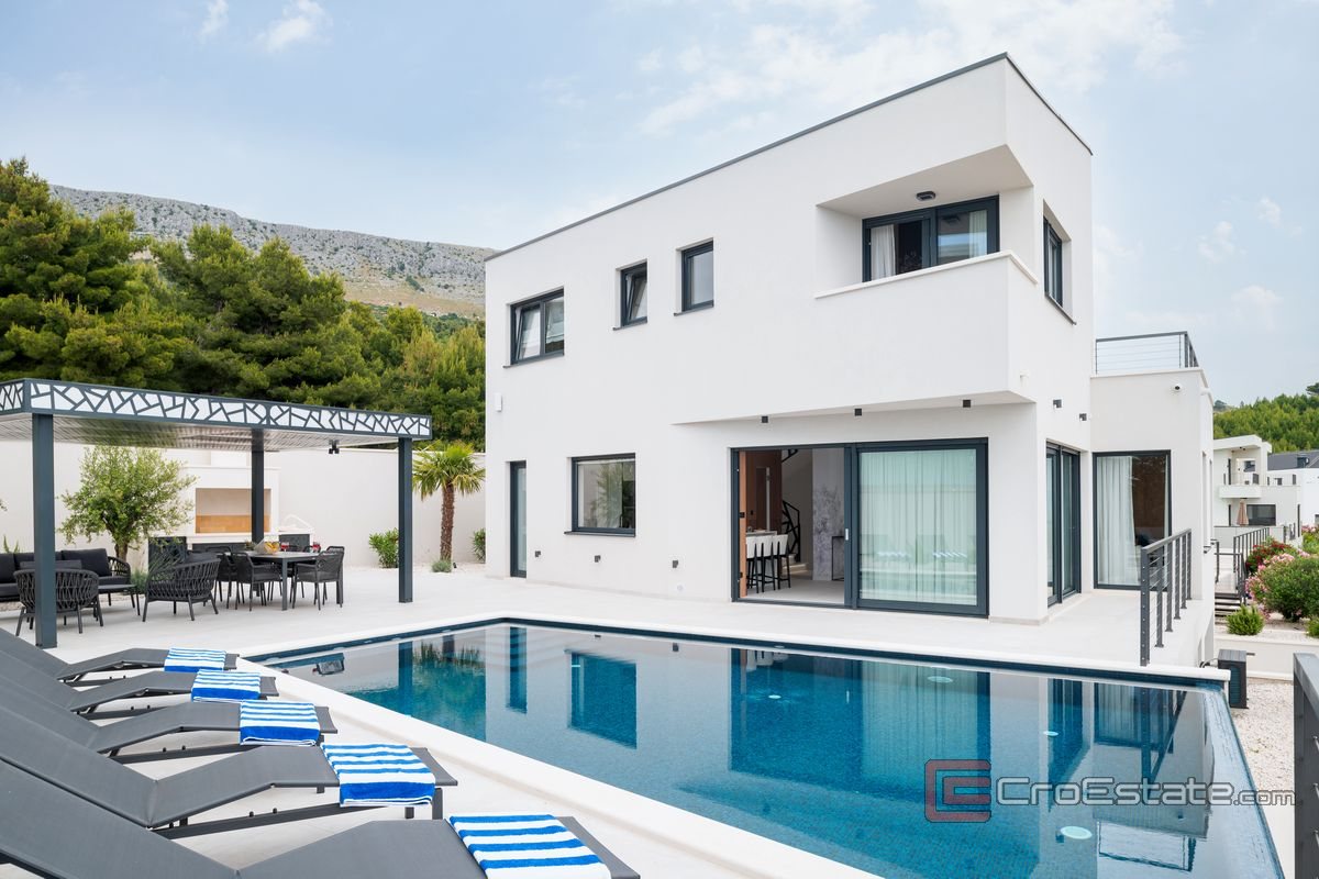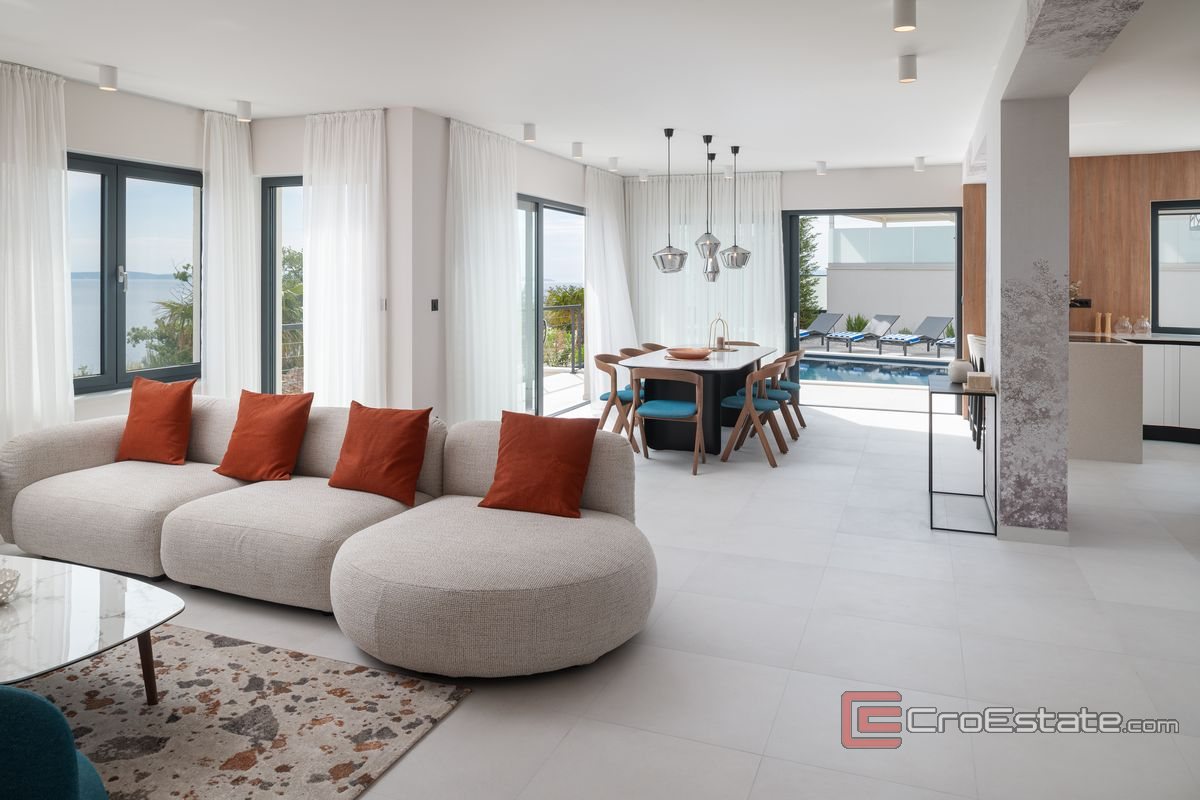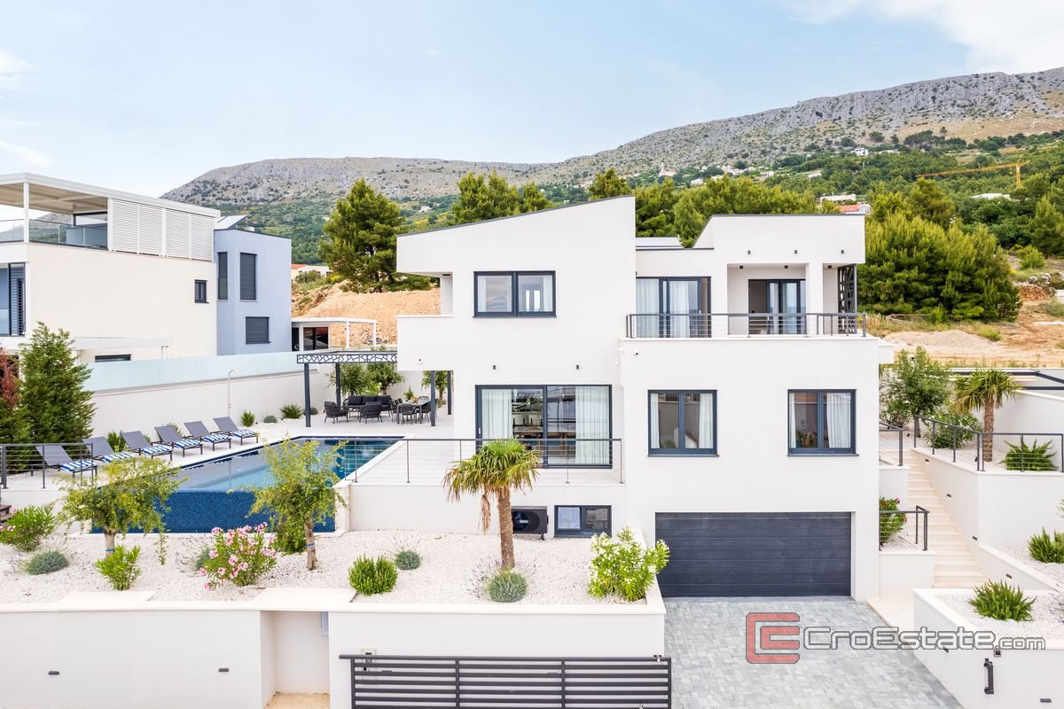 A beautiful villa with a swimming pool and an open sea view is for sale. The villa is newly built and located in a popular location in Podstrana. The villa has 220 m2 of living space, which is located on a plot of 605 m2.