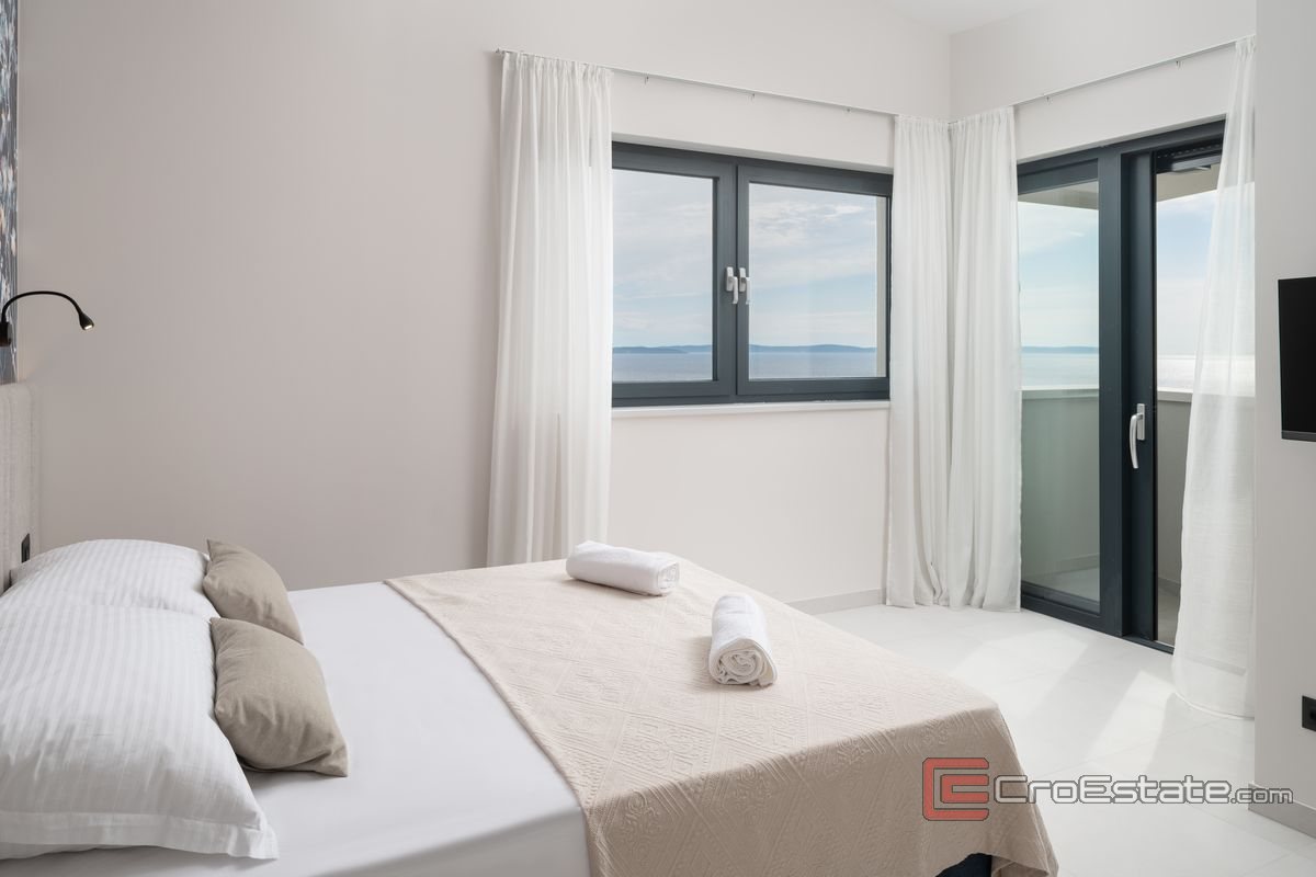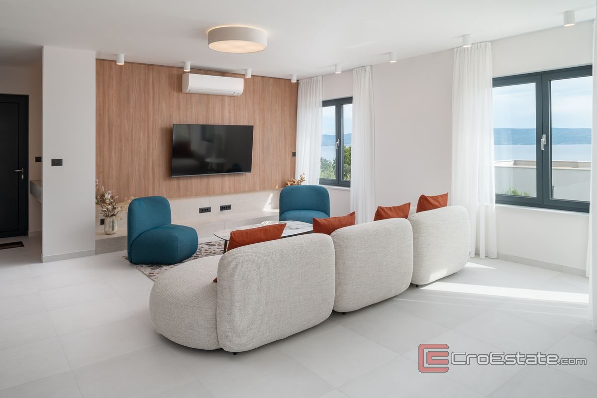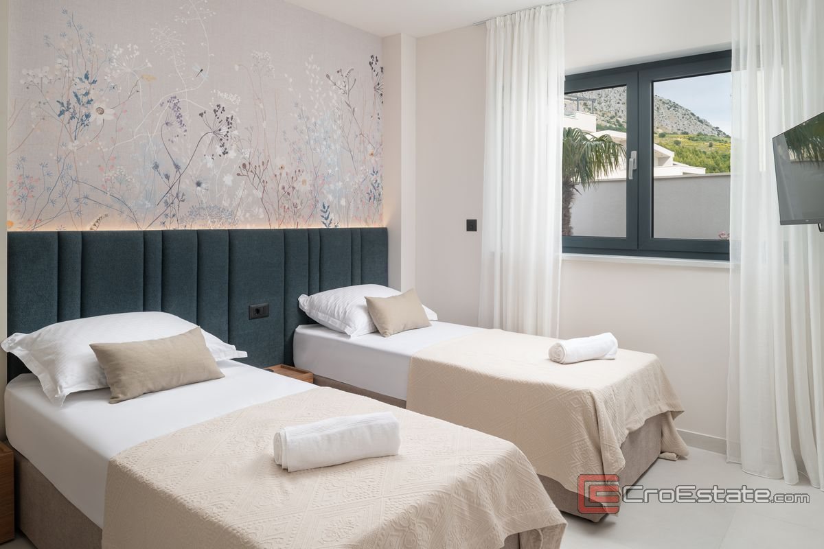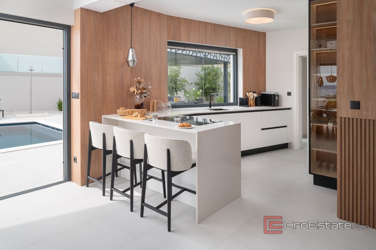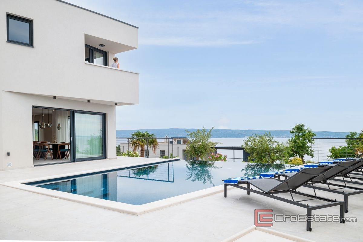 A beautiful villa with a swimming pool and an open sea view is for sale. The villa is newly built and located in a popular location in Podstrana. The villa has 220 m2 of living space, which is located on a plot of 605 m2.