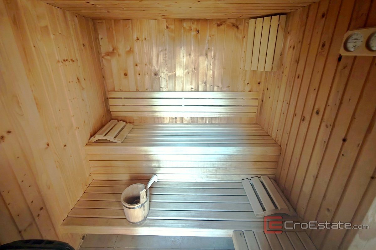 In the garden there is a swimming pool, sauna, jacuzzi, barbecue, outdoor table with chairs, children's playground, which make the outdoor space an ideal oasis for relaxation, especially in the summer months.