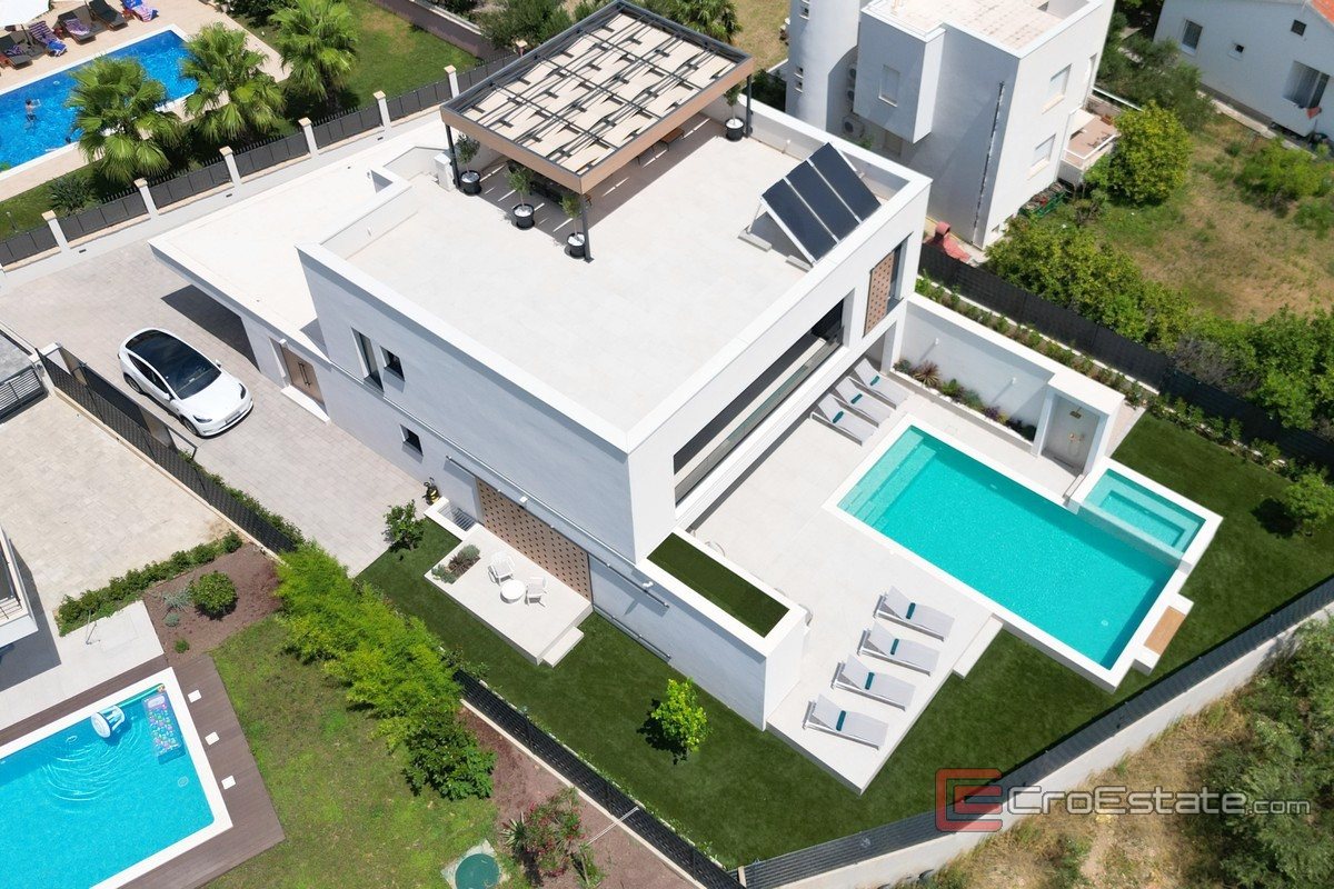 This luxurious, newly built villa with swimming pool and jacuzzi is located on the eastern side of Split and is an ideal choice for those looking for a modern home or investment. It is spread over a plot of 780 m², with a spacious living area of 360 m², providing extraordinary comfort for family life or tourist rental.