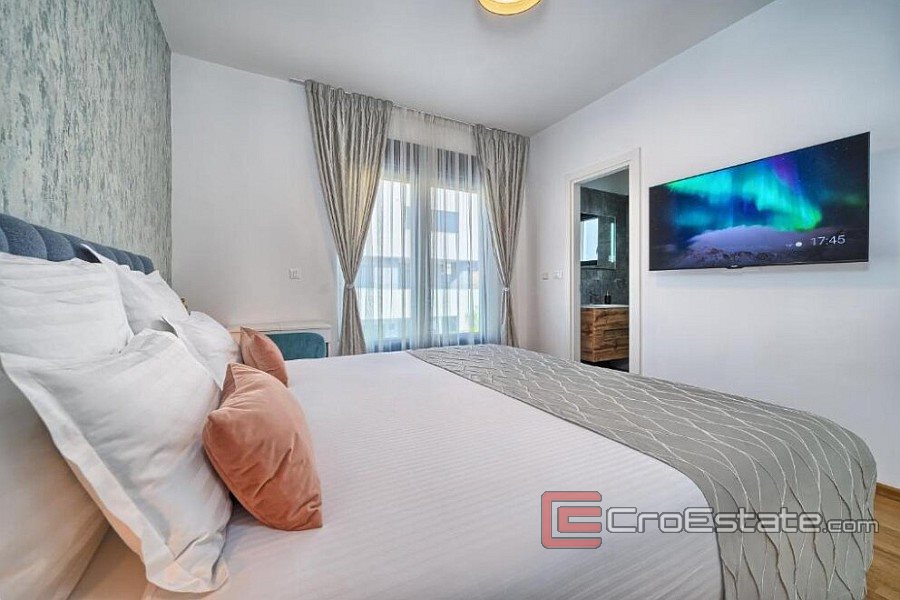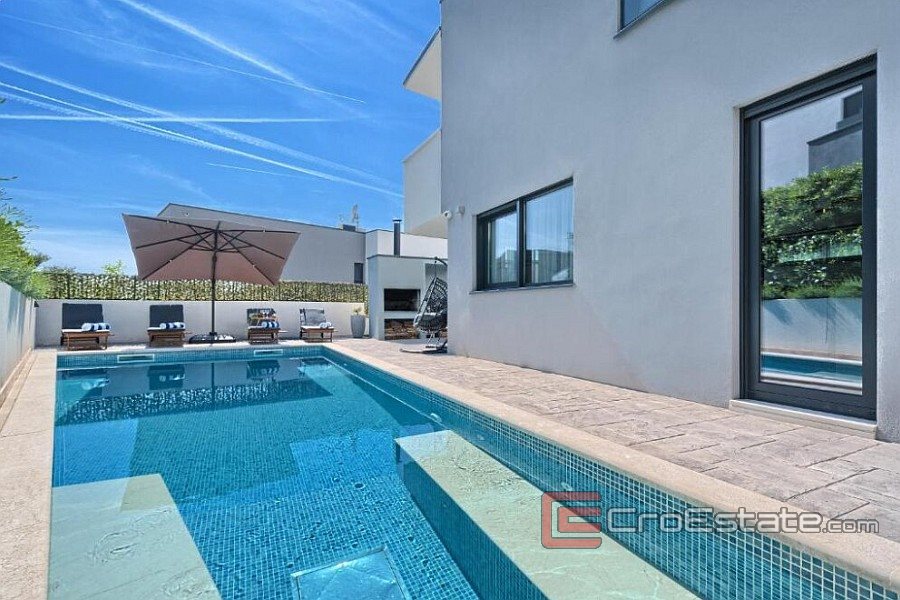 For sale is a contemporary luxury villa located within a prestigious gated community in Strožanec, not far from the picturesque city of Split. Designed to ensure maximum privacy, the property is exclusively available to owners, with controlled access via automatic gates and a comprehensive video surveillance system.
