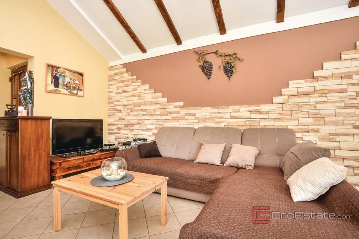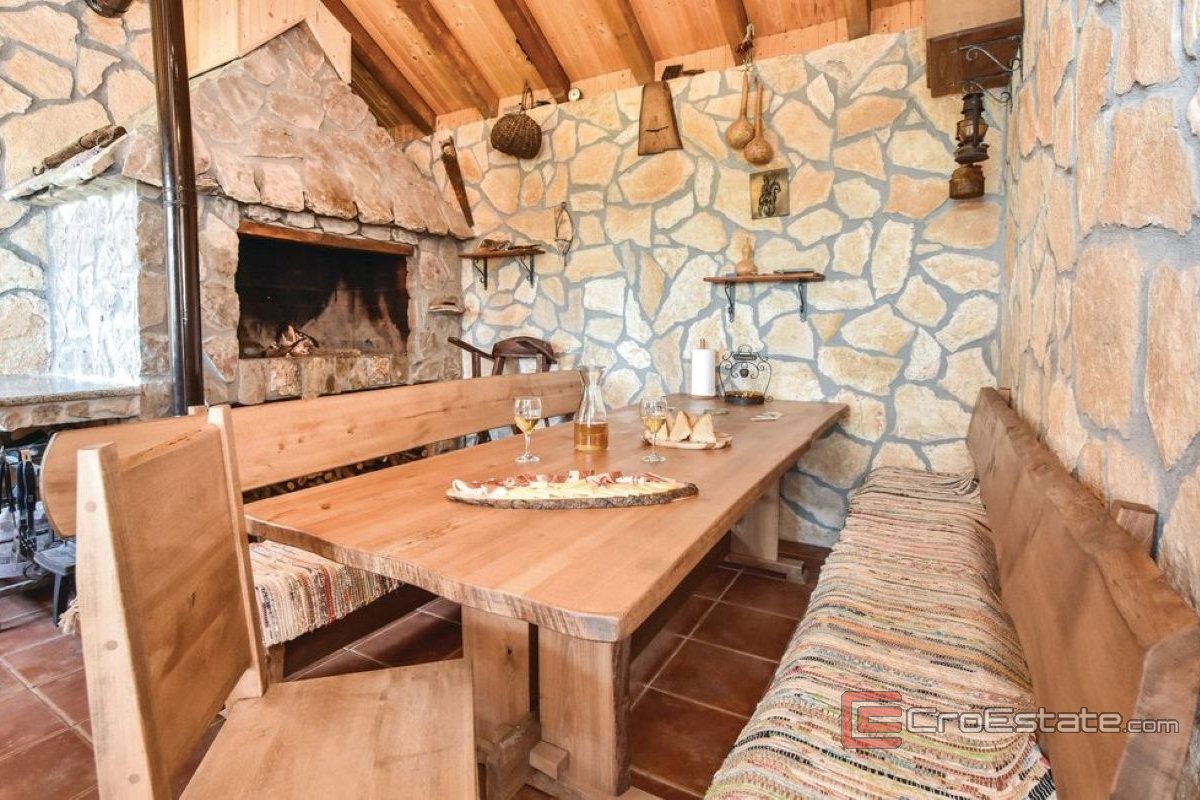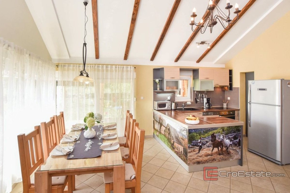 A beautiful house located in an intimate location 18 kilometers from Split, for long-term rent. It is positioned to the south and is located in beautiful nature on a plot of 7000m2.