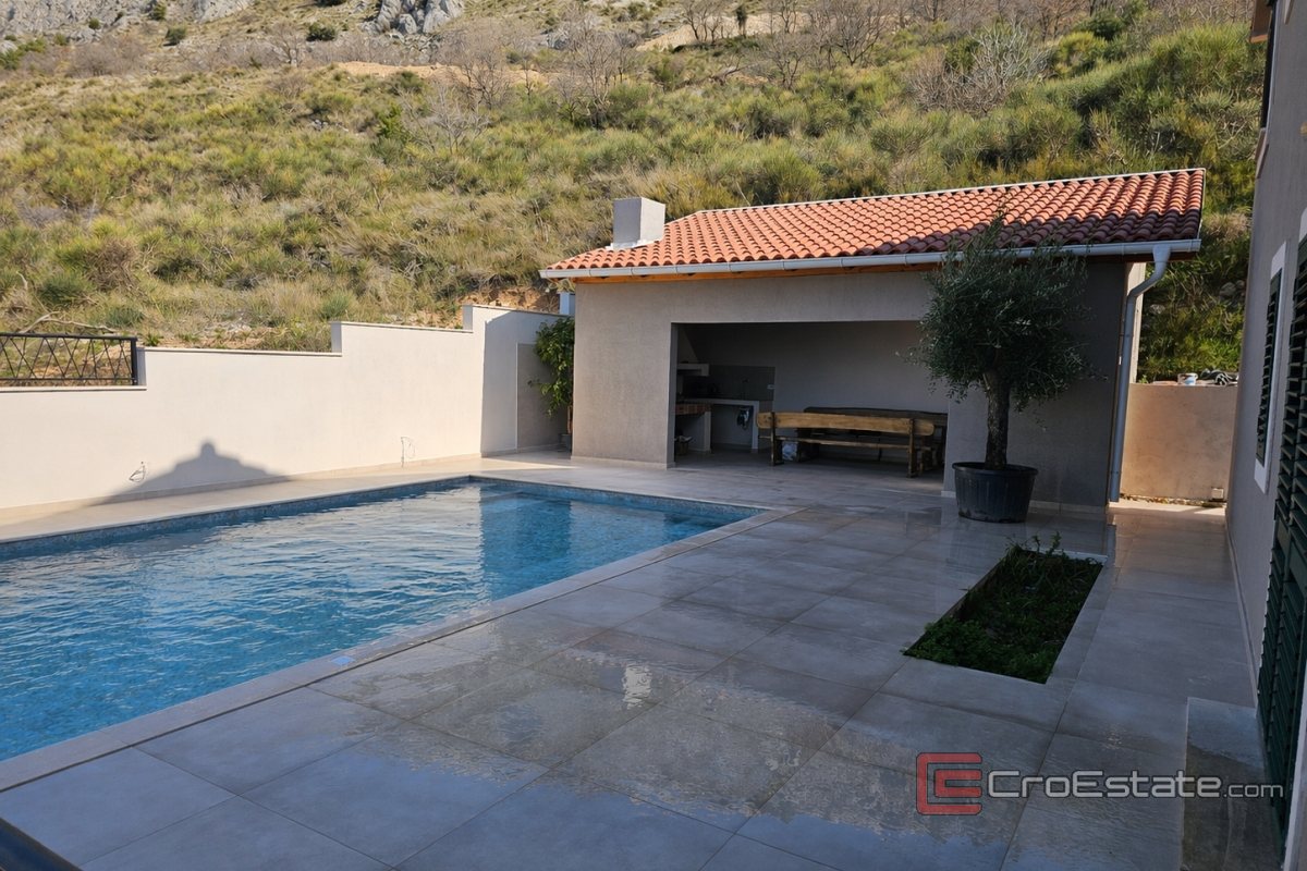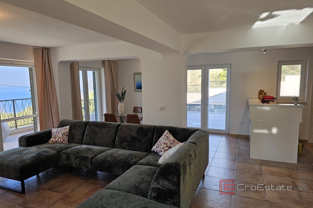 In an attractive location above Podstrana there is a detached house with a swimming pool and a beautiful sea view. It is located on a plot of 430 m², while the total living area is approximately 200 m², spread over two floors.