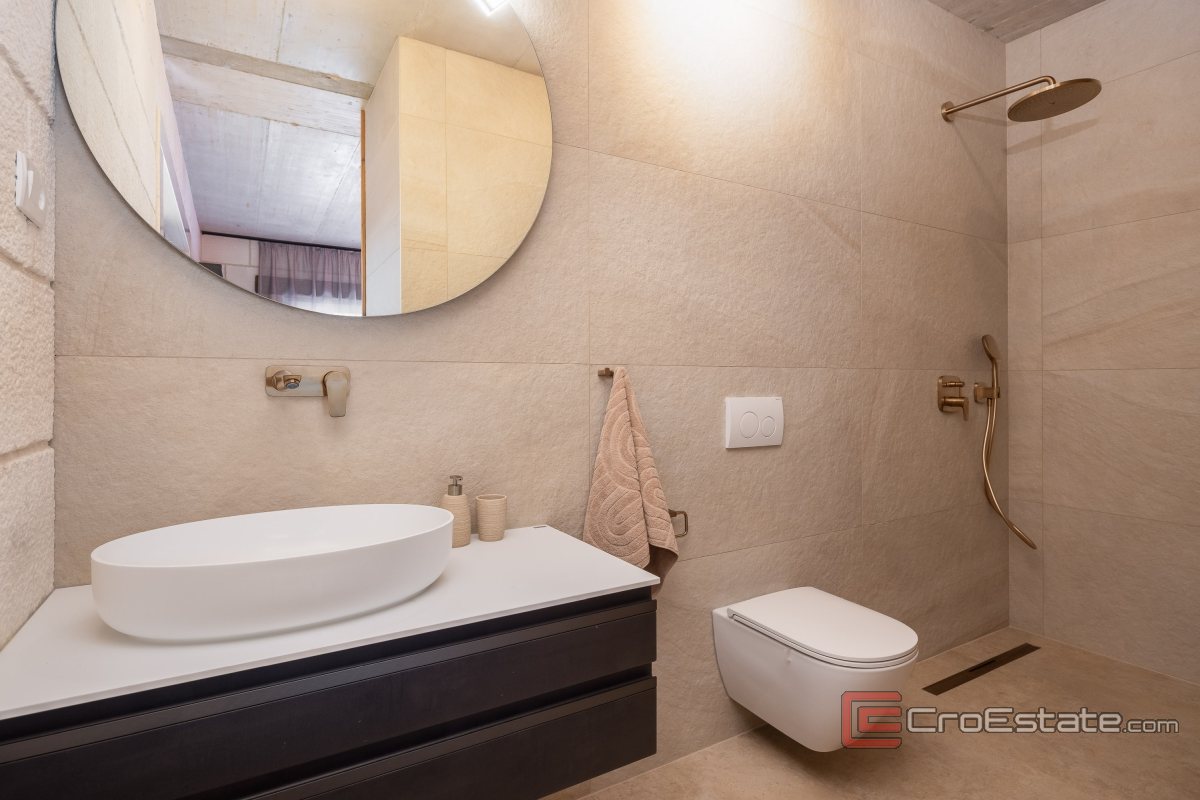The second part of the villa features four modern bedrooms, each with its own bathroom. They are equipped with top-quality king-size beds and mattresses from world-famous brands. One of the bedrooms has a bathtub that overlooks the beautiful greenery. It is important to note that the air conditioning system covers the entire interior of the villa, and the villa also has underfloor heating. The heating of the water and the entire villa is controlled from the engine room, via pipes that are installed underground. The villa is also equipped with wireless internet and satellite television on five televisions.