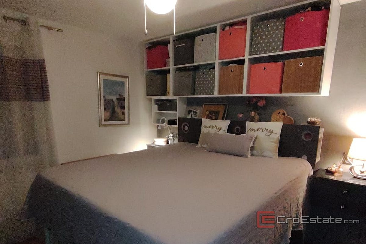 The apartment is in move-in condition, with the possibility of minor adjustments according to your own wishes. The kitchen is custom-made, and the built-in elements remain in the apartment. The living room is spacious and bright, with large glass walls that create a pleasant atmosphere. One room is smaller, suitable for a children's room, while the master bedroom is spacious and comfortable, with access to an enclosed balcony that currently serves as an additional storage room.