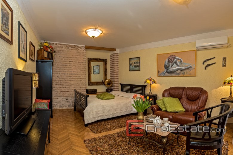 Fully furnished and equipped with handmade furniture, antiques and art. Because of extremely good position, apartment is ideal for tourist rentals as well as for living in the center of all events. For sale.